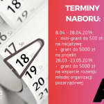 Aby złożyć wniosek do konkursu, należy zarejestrować się (lub zalogować – w przypadku wnioskodawców z ubiegłych lat) w systemie on-line i wypełnić formularz. Nabór trwa do 28 kwietnia 2019 dla wniosków o dotacje na mini-grant (do 500 zł) na inicjatywę lokalną oraz na grant do 5000 zł na projekt ze sfery pożytku publicznego. Do 23 maja 2019 można składać wnioski na dotację (do 5000 zł) na wsparcie rozwoju młodej organizacji pozarządowej. W ramach konkursu można złożyć maksymalnie jeden wniosek. Projekty mogą być realizowane w okresie od 1 czerwca do 30 listopada 2019.