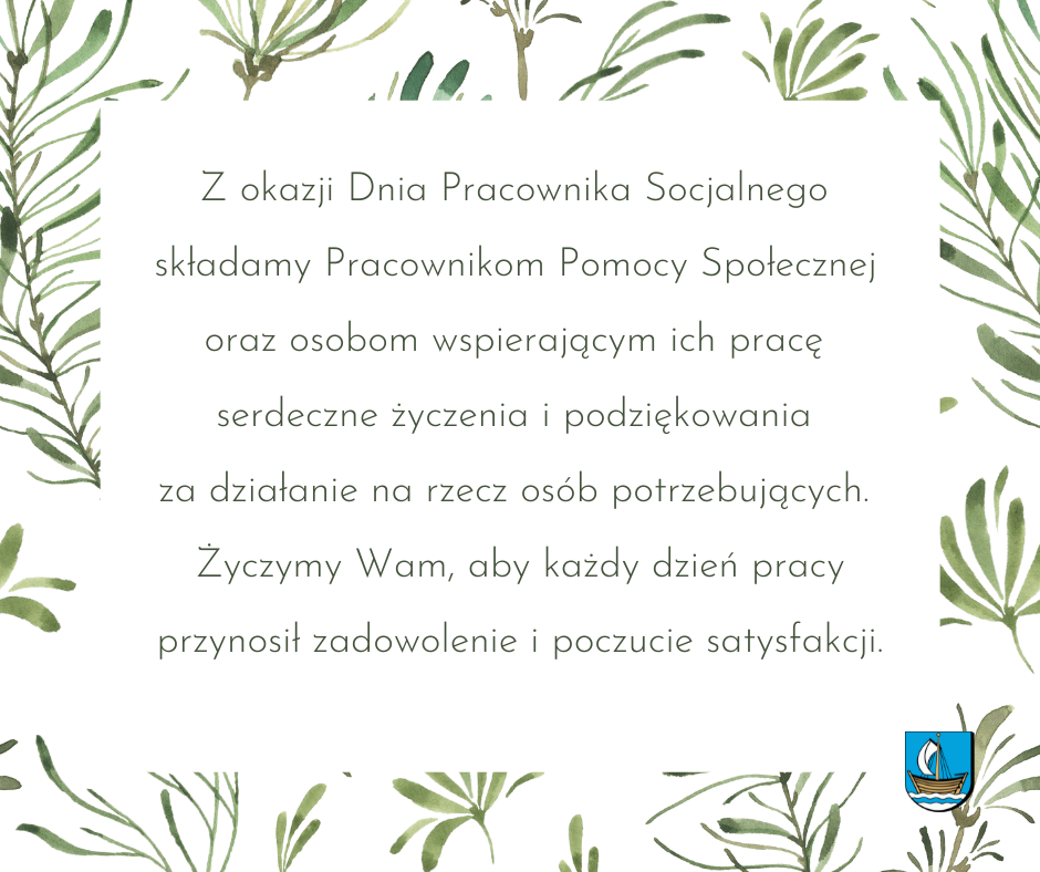 Z okazji Dnia Pracownika Socjalnego składamy Pracownikom Pomocy Społecznej oraz osobom wspierającym ich pracę serdeczne życzenia i podziękowania za działanie na rzecz osób potrzebujących.