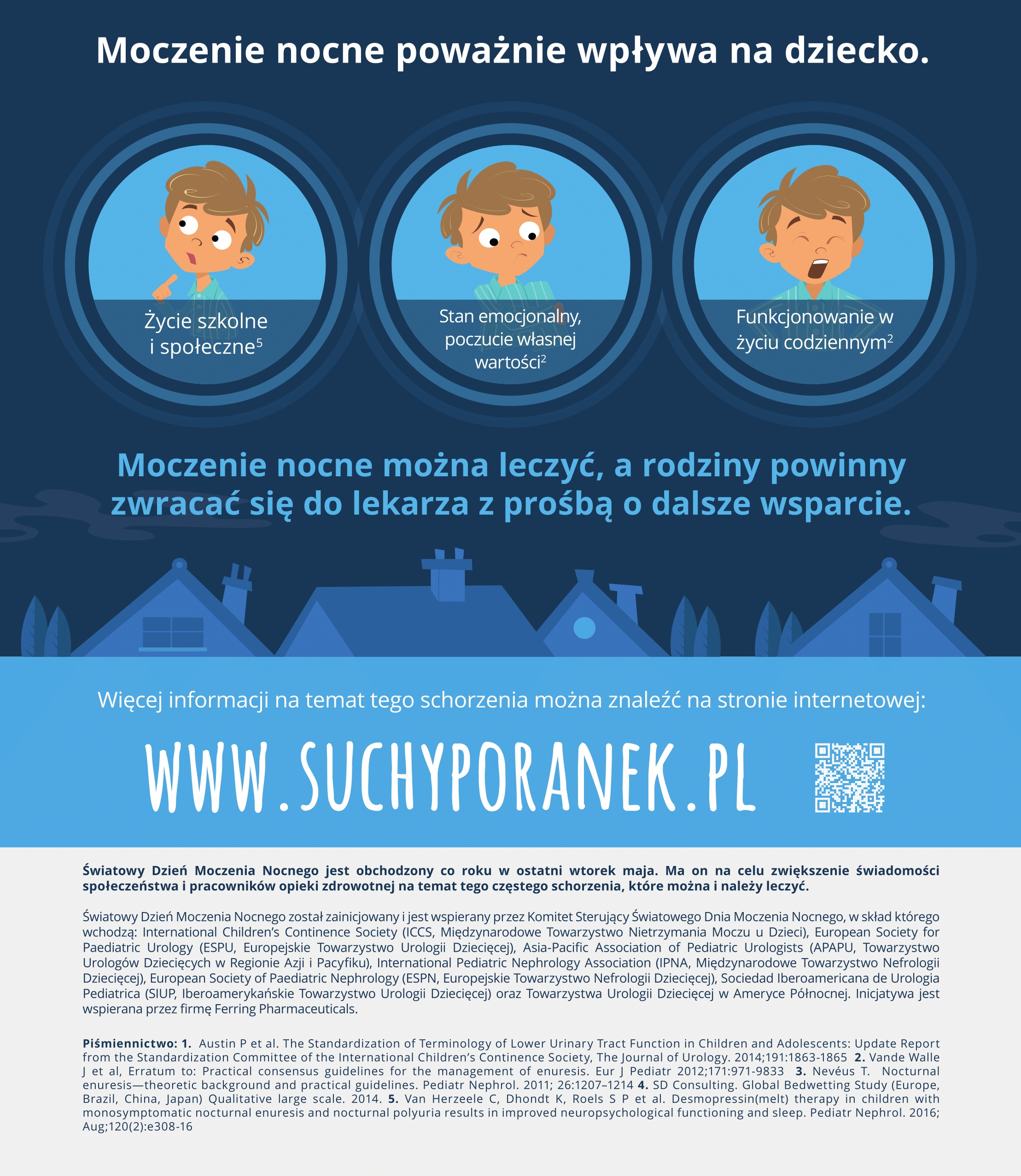 Strona główna » Aktualności » 30 maja 2017 – ŚWIATOWY DZIEŃ MOCZENIA NOCNEGO Data dodania 26.05.2017 30 maja 2017 – ŚWIATOWY DZIEŃ MOCZENIA NOCNEGO Enuresis – Moczenie nocne – krótka informacja Porozmawiajmy o moczeniu – materiał dla dzieci http://www.suchyporanek.pl/porady/swiatowy-dzien-moczenia-nocnego-2017-informacje Drukuj
