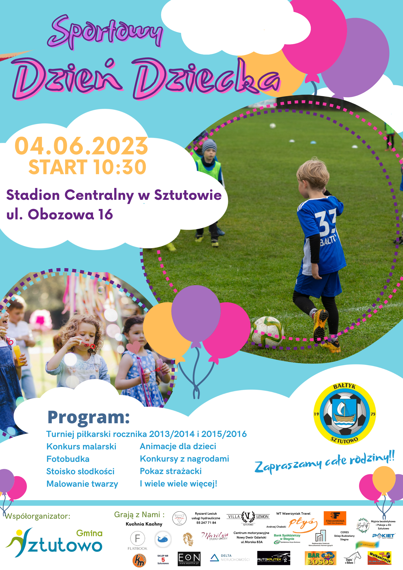 Strona główna » Aktualności » 4 czerwca- Sportowy Dzień Dziecka w Sztutowie Data dodania 02.06.2023 4 czerwca- Sportowy Dzień Dziecka w Sztutowie Drukuj