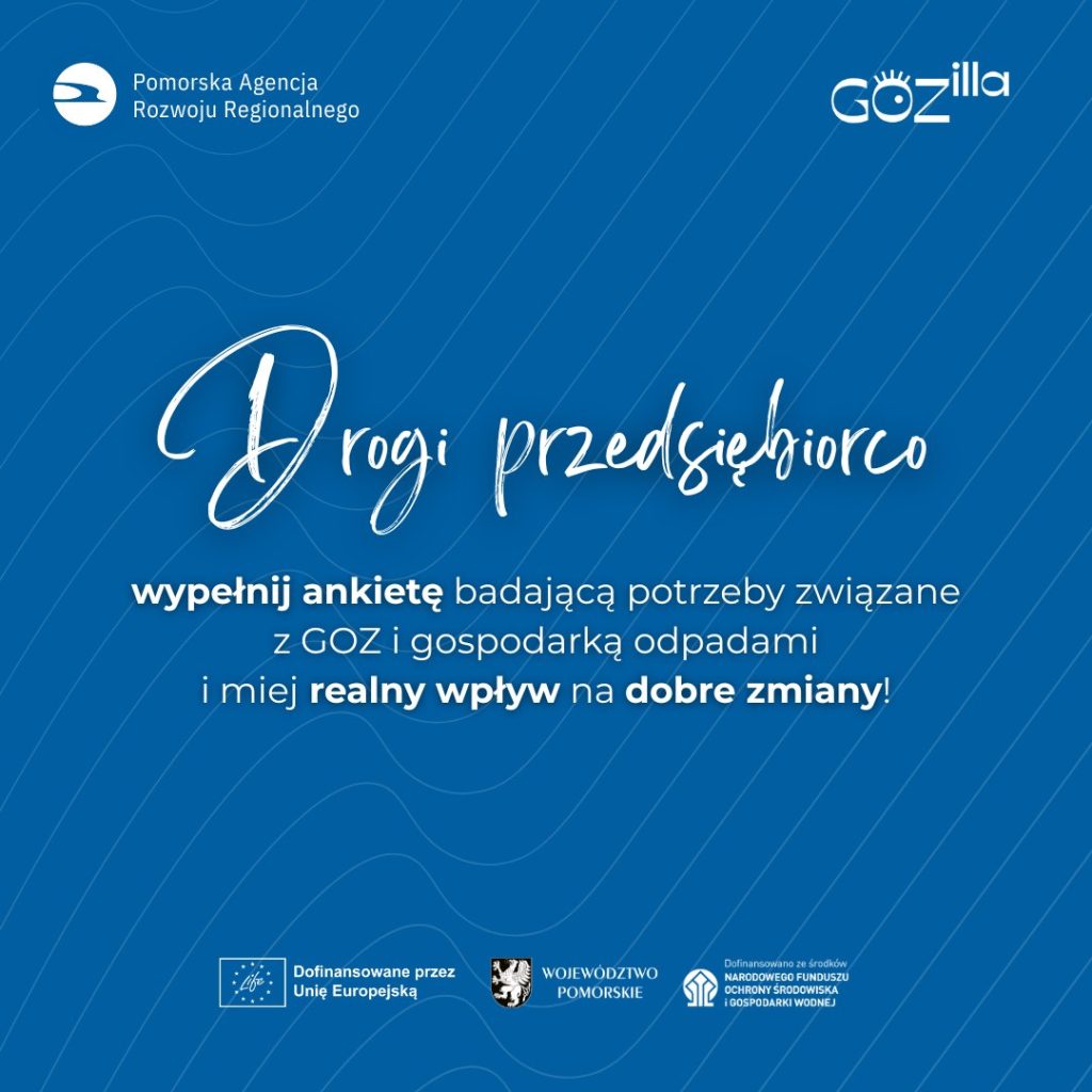 W ramach projektu GOZilla Pomorskie tworzymy #CentrumWsparciadlaFirm (start: kwiecień 2026), które będzie bezpłatnie pomagać pomorskim firmom działać bardziej ekologicznie i efektywnie. Wasze odpowiedzi pomogą nam stworzyć ofertę idealnie dopasowaną do Waszych potrzeb!