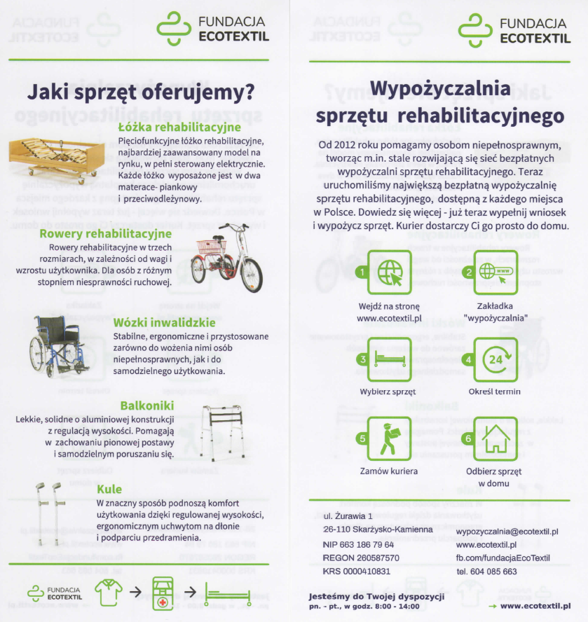 Strona główna » Aktualności » Bezpłatne wypożyczalnie sprzętu rehabilitacyjnego Data dodania 13.11.2019 Bezpłatne wypożyczalnie sprzętu rehabilitacyjnego Drukuj
