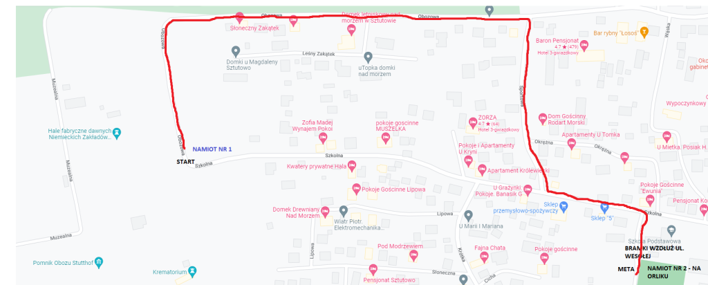 START: Róg ul. Szkolnej i Obozowej w Sztutowie – ul. Sportowa- ul. Szkolna- ul. Wesoła