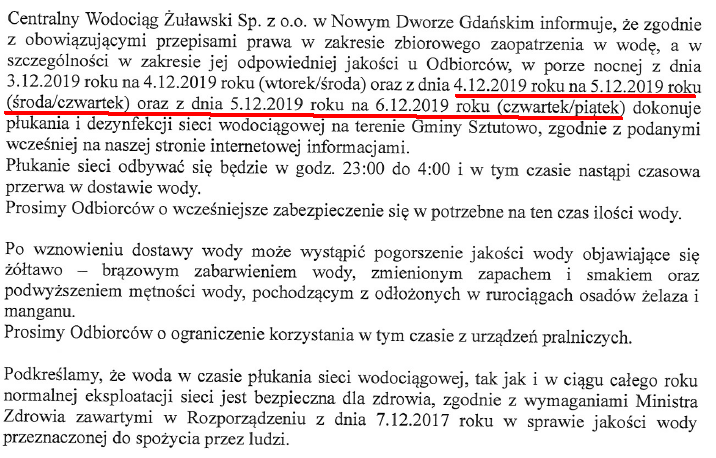 Strona główna » Aktualności » Brak wody w nocy 4/5, 5/6 grudnia Data dodania 04.12.2019 Brak wody w nocy 4/5, 5/6 grudnia Drukuj