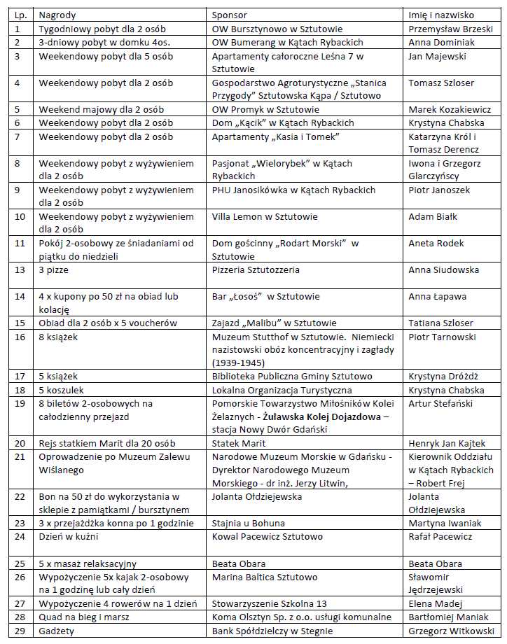 • Ogromne podziękowania dla sponsorów nagród, które zostały rozlosowane wśród wszystkich uczestników.
