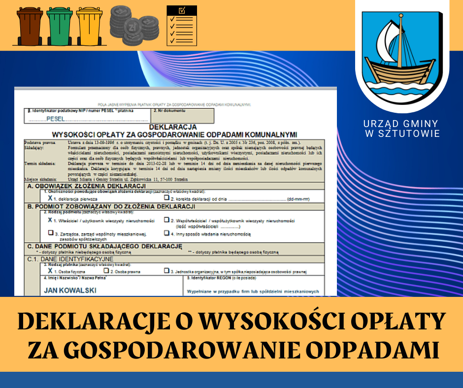 W związku ze zmianą średniorocznego zużycia wody przypominamy o obowiązku złożenia nowej deklaracji o wysokości opłaty za gospodarowanie odpadami komunalnymi.