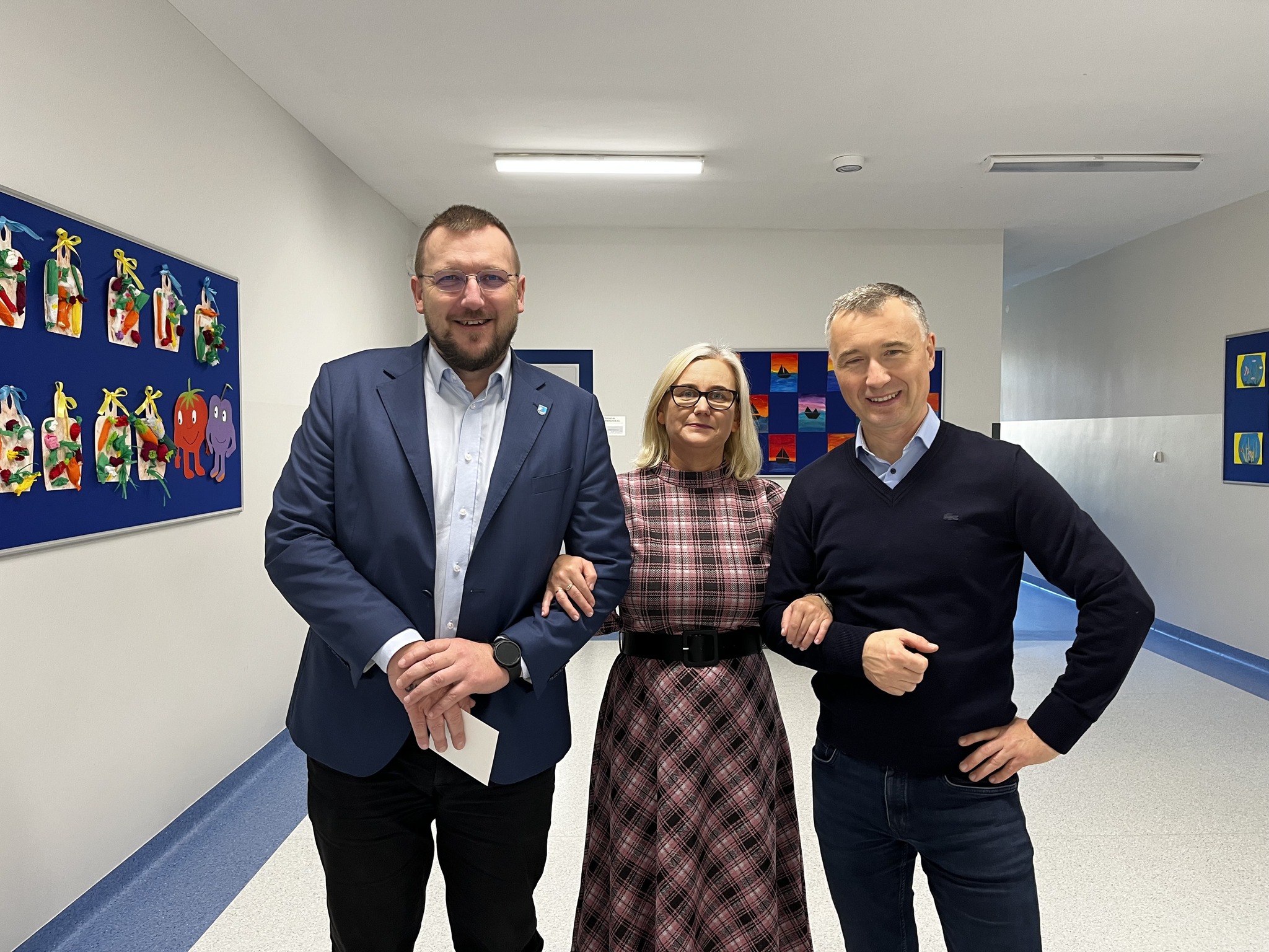17.10.24 r. Wójt Robert Zieliński wraz z paniami dyrektorkami Sylwią Owsińską i Agnieszką Suską odebrali ostatecznie zakończone roboty budowlane dla zadania „Dostępna szkoła – likwidacja barier architektonicznych i komunikacyjnych w budynku Szkoły Podstawowej w Sztutowie”. Zadanie jest dofinansowane w ramach Programu Inwestycji Strategicznych: Polski Ład w kwocie 2 mln zł, wkład Gminy Sztutowo wynosi 355 450 zł.
