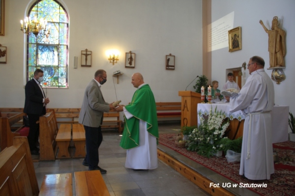30 sierpnia 2020 r. odbyła się uroczysta dożynkowa Msza Św. w kościele parafialnym w Sztutowie. Obecni byli m.in. Wójt Gminy Sztutowo, Przewodniczący Rady Gminy oraz przedstawiciele naszych wsi – sołtyski Katarzyna Choduń, Monika Siebert oraz sołtys Marek Kacprzak.