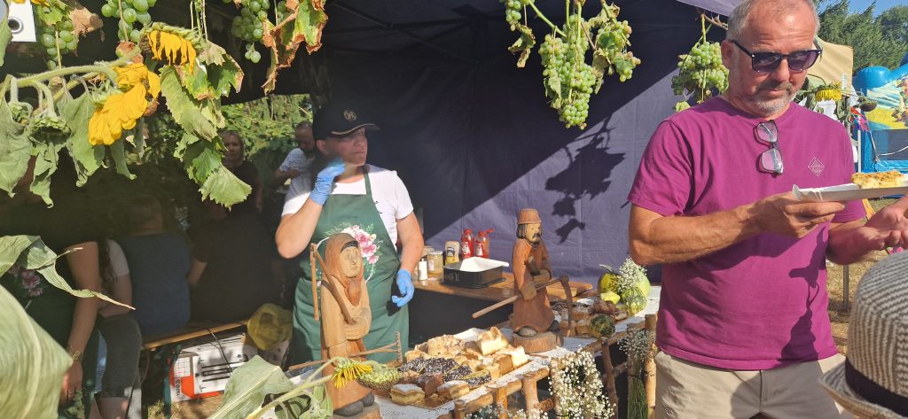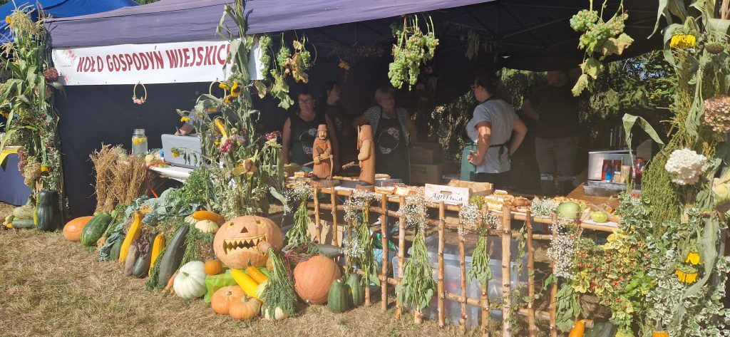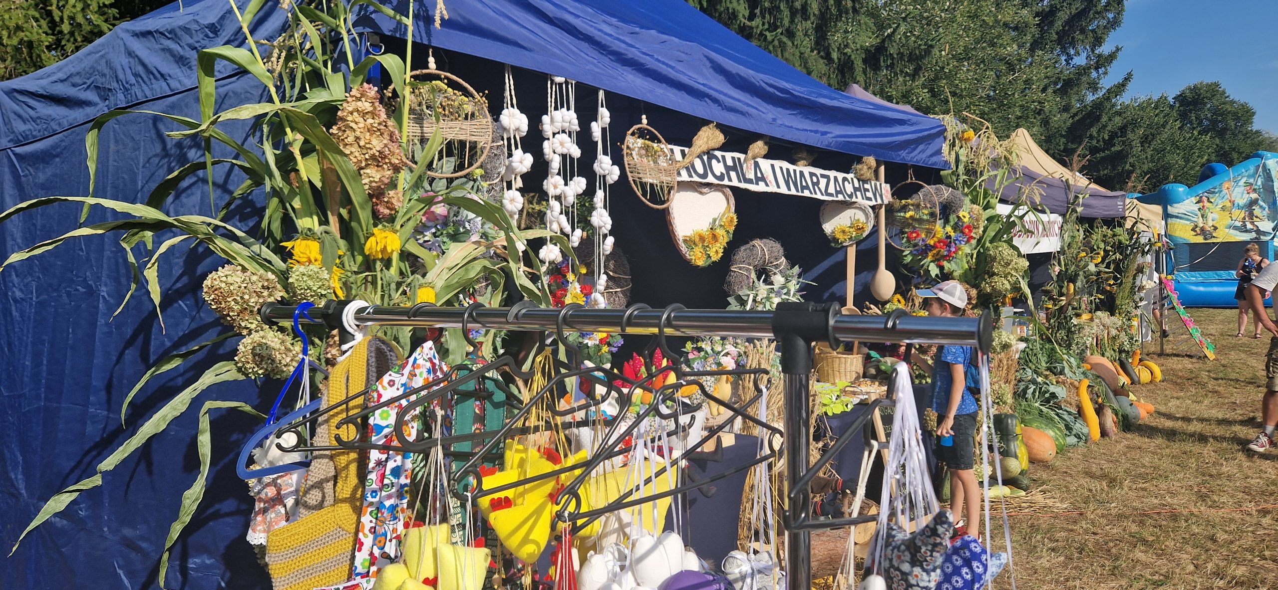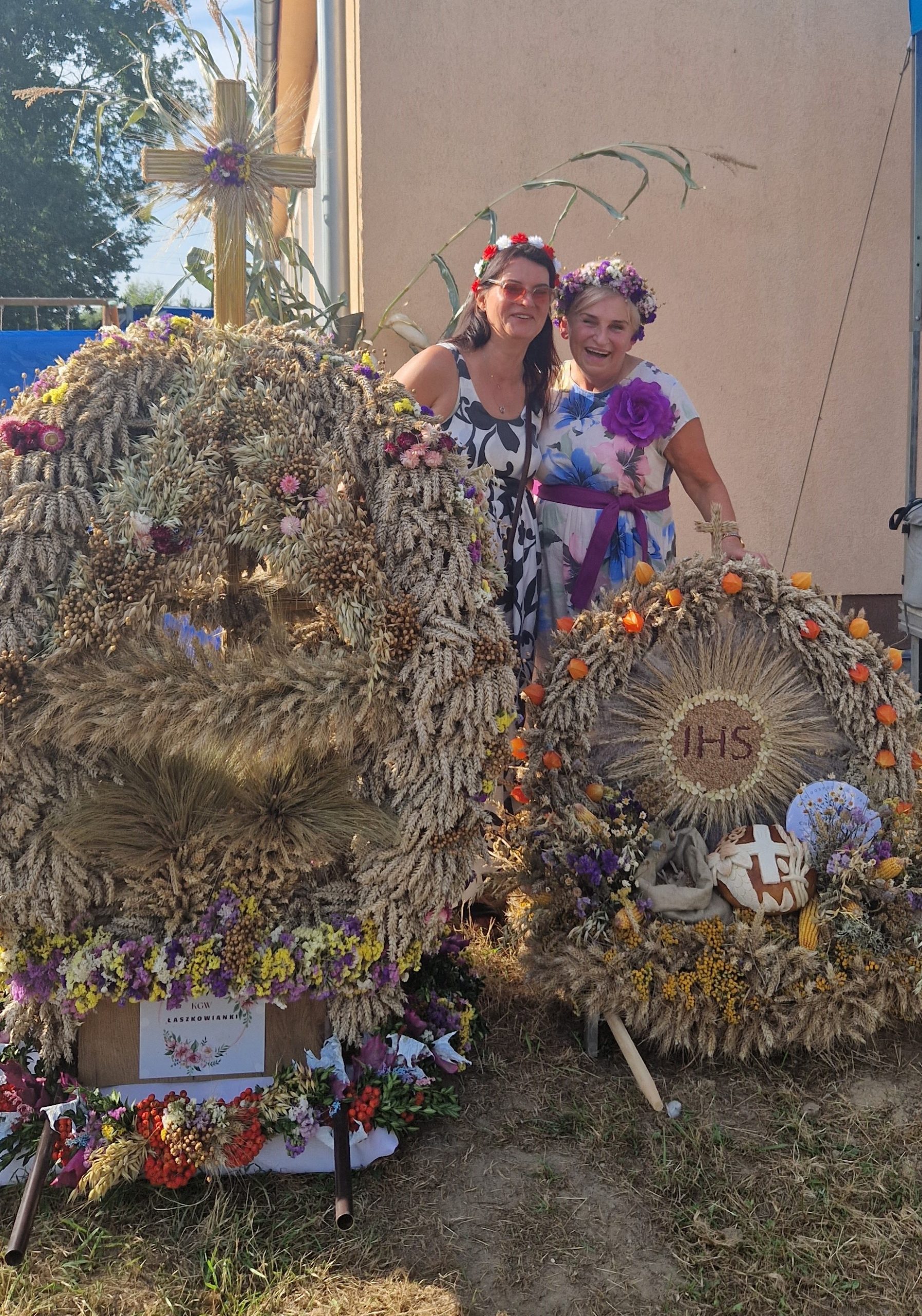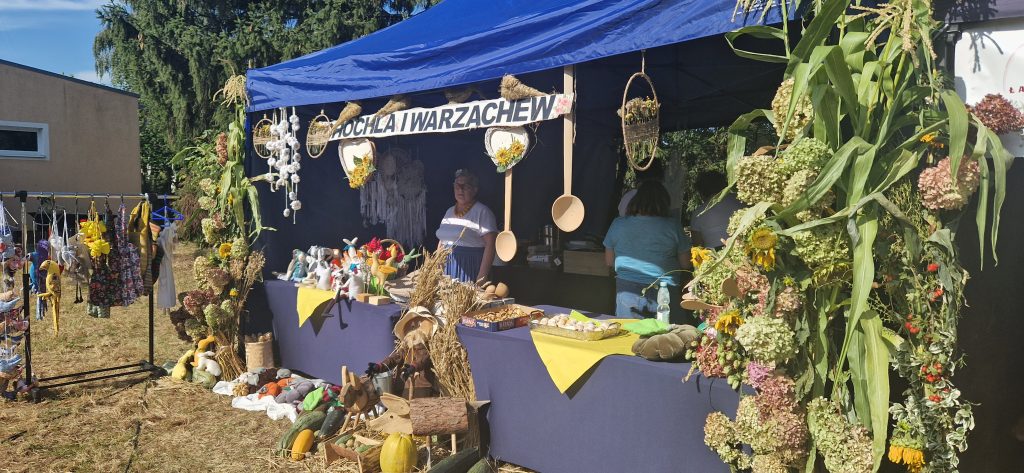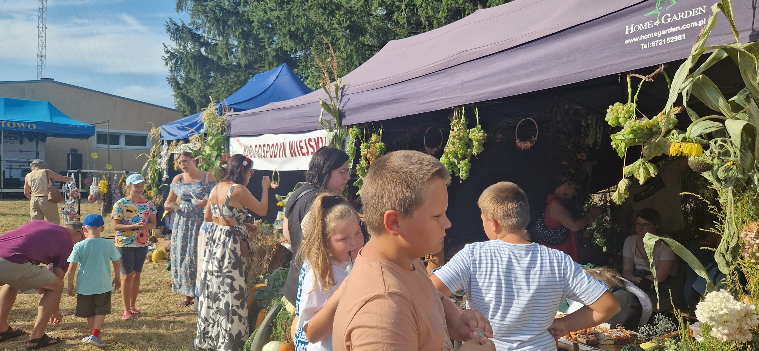 Kolejnym odznaczeniem było przygotowanie witaczy i stoisk dożynkowych. Tu poza naszymi cudownymi Kołami Gospodyń Wiejskich włączyły się również sołectwa: Płonina, Łaszka, Grochowo Trzecie i Kąty Rybackie, dzięki którym mogliśmy podziwiać wielobarwne dekoracje z akcentem plonów matki ziemi. Sołectwu Kąty Rybackie dziękujemy również za przygotowanie tablic kierujących gości na miejsce dożynek.