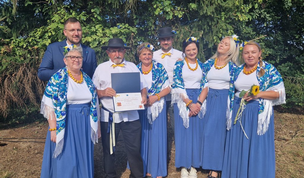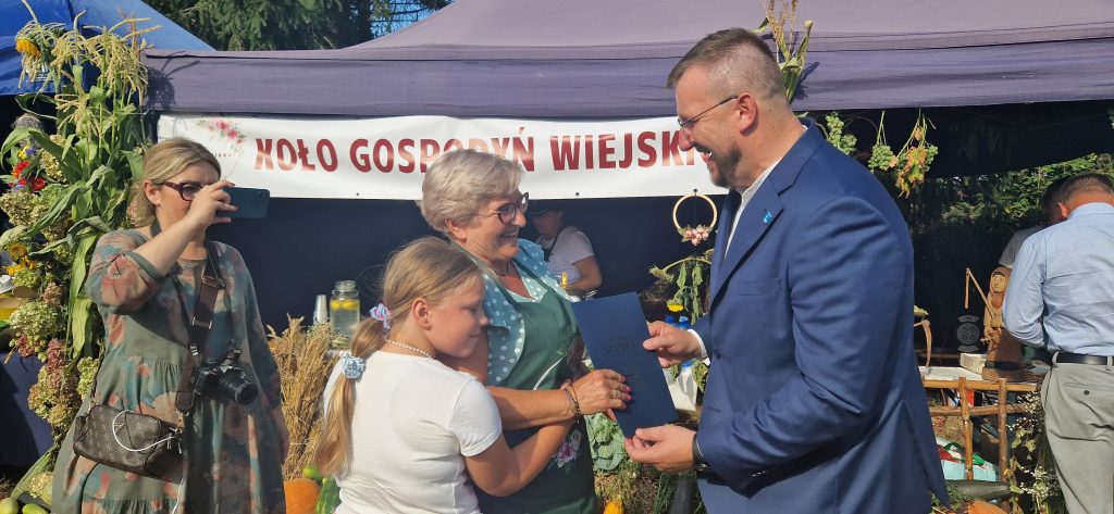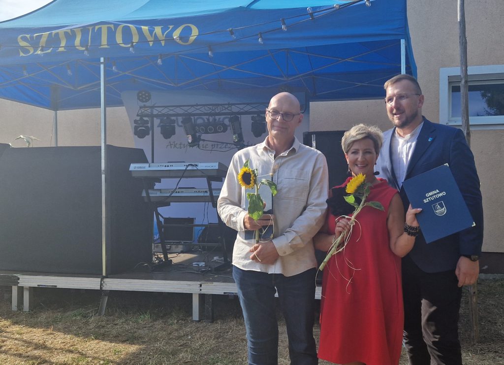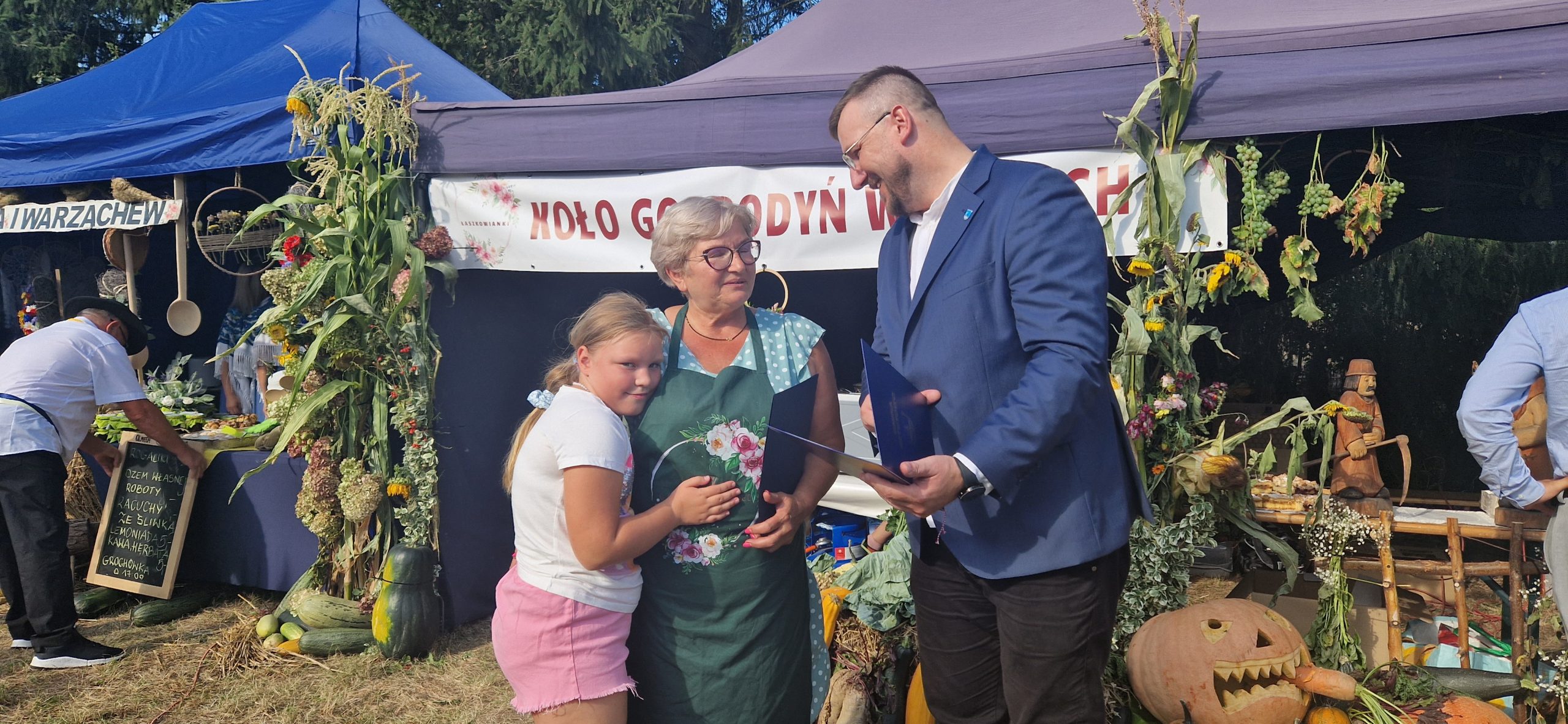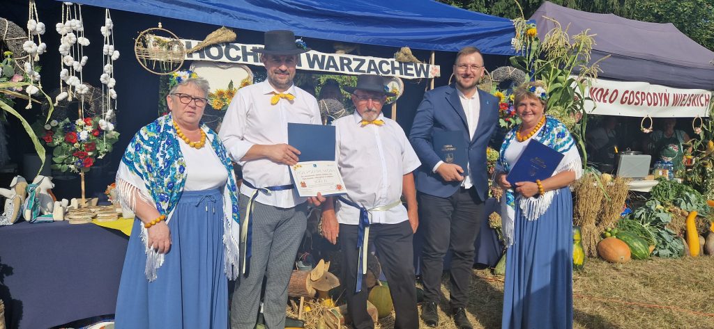 Następnie nadszedł czas na podziękowania za zaangażowanie i przygotowanie wieńców dożynkowych, tu wielkie brawa należą się KGW Łaszkowianki z Łaszki i KGW Chochla i Warząchew ze Sztutowa oraz ich przyjaciołom, którzy wspólnie stworzyli przepiękne i niewątpliwie czasochłonne dzieła sztuki.