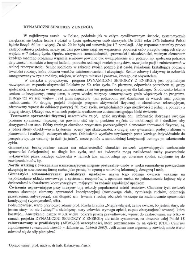 Strona główna » Aktualności » Dynamiczni Seniorzy z Energią – informacja Data dodania 29.05.2018 Dynamiczni Seniorzy z Energią – informacja Drukuj