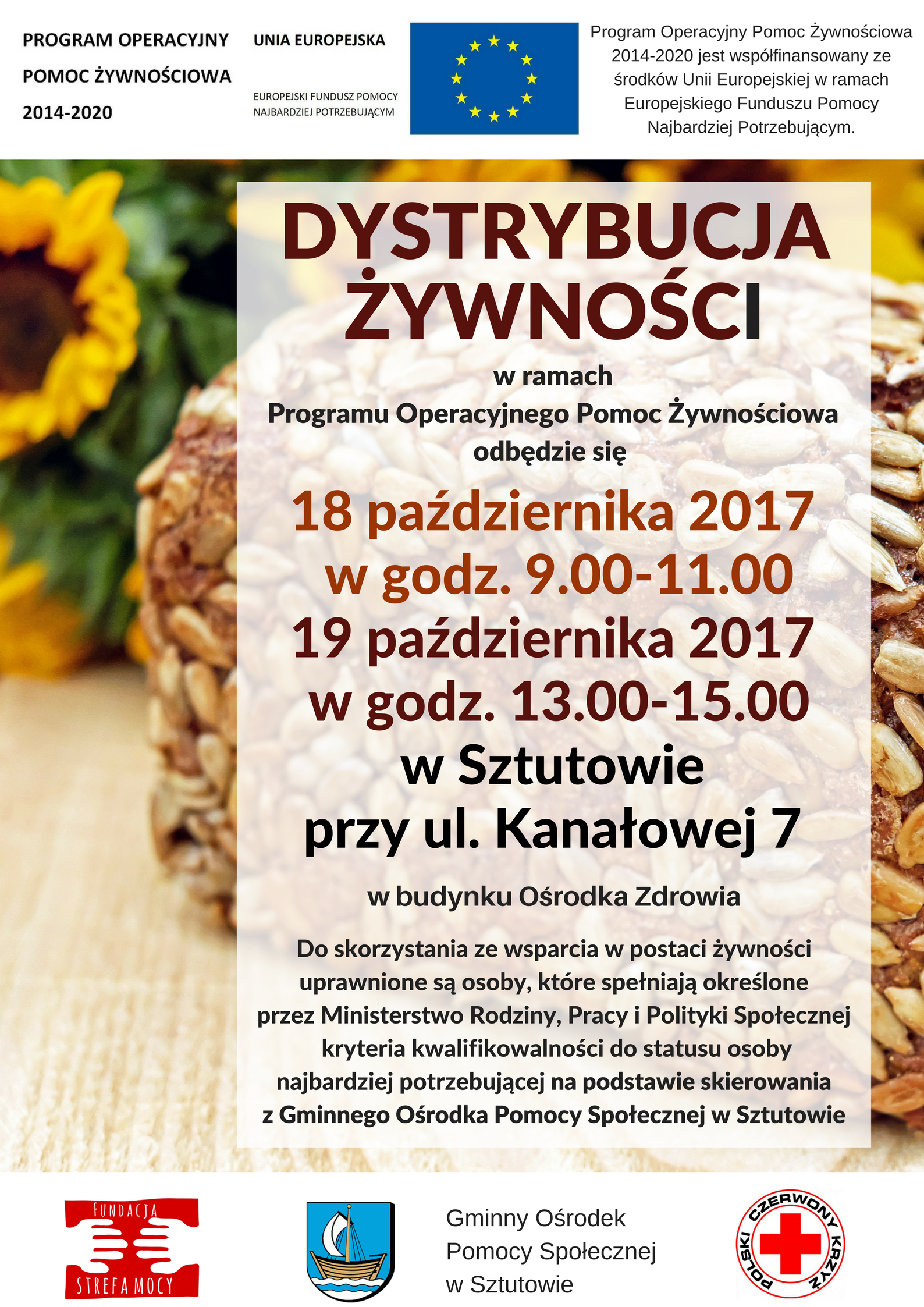 Fundacja Strefa Mocy i Gminny Ośrodek Pomocy Społecznej w Sztutowie zapraszają do odbioru żywności w ramach Programu Operacyjnego Pomoc Żywnościowa.