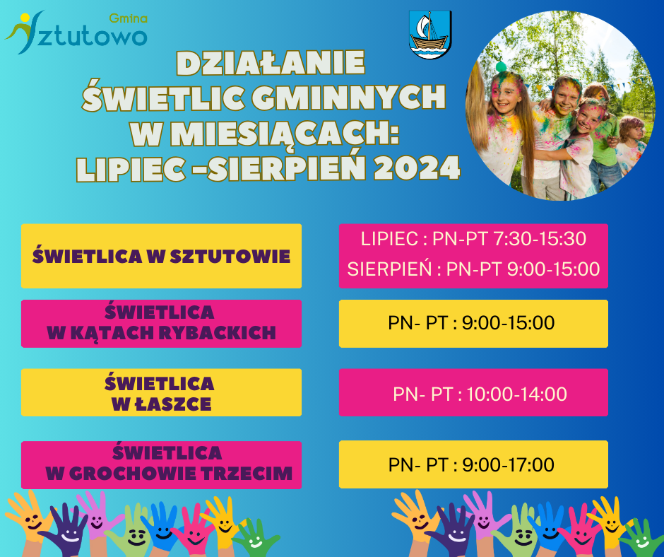 Strona główna » Aktualności » Działanie świetlic gminnych w okresie wakacji Data dodania 19.06.2024 Działanie świetlic gminnych w okresie wakacji Drukuj