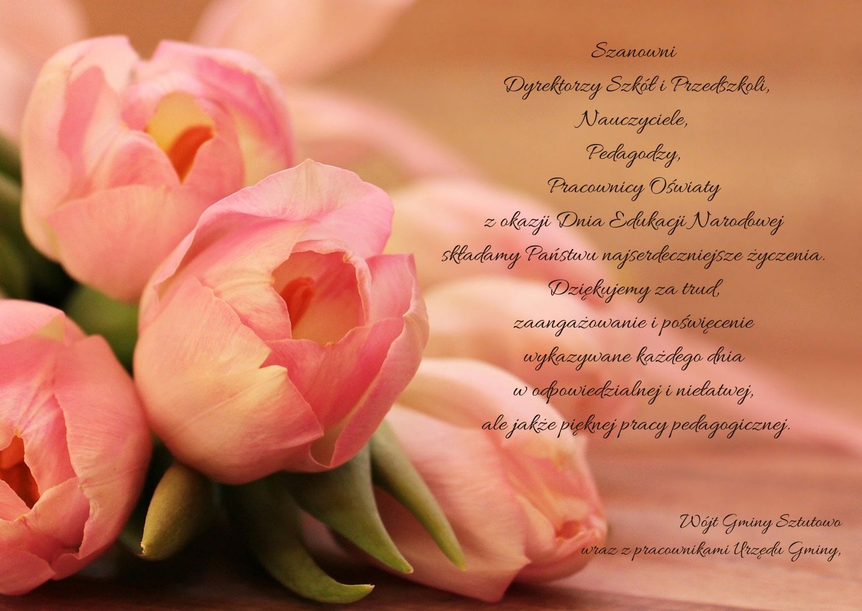 Szanowni Dyrektorzy Szkół i Przedszkoli, Nauczyciele, Pedagodzy, Pracownicy Oświaty z okazji Dnia Edukacji Narodowej składamy Państwu najserdeczniejsze życzenia. Dziękujemy za trud, zaangażowanie i poświęcenie wykazywane każdego dnia w odpowiedzialnej i niełatwej, ale jakże pięknej pracy pedagogicznej.