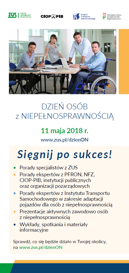 Inspektorat Zakładu Ubezpieczeń Społecznych w Sztumie organizuje 11 maja 2018 r. Dzień Osób z Niepełnosprawnością.