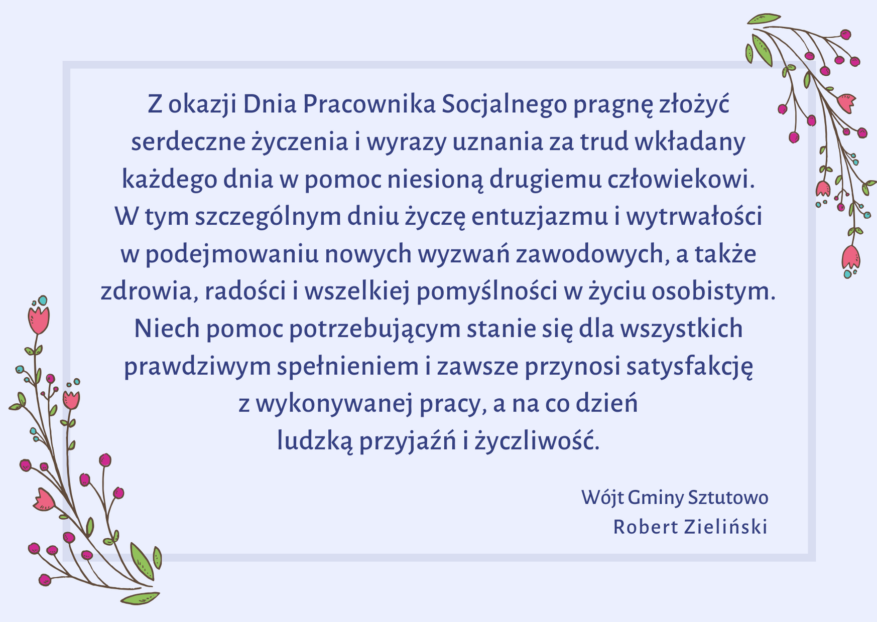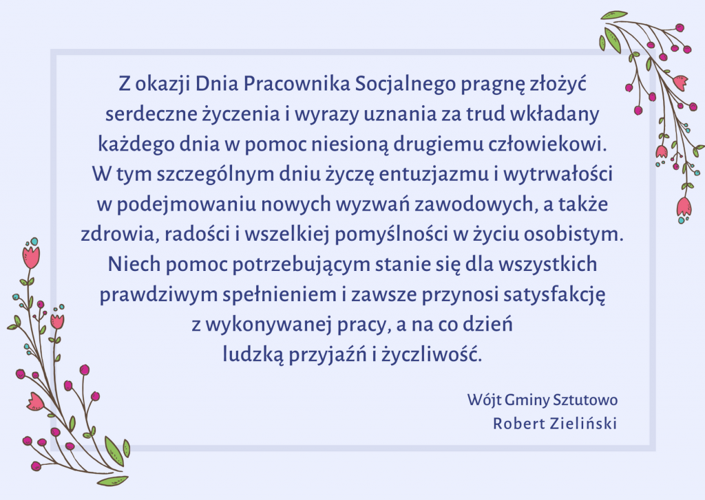Strona główna » Aktualności » Dzień Pracownika Socjalnego – życzenia dla Pracowników GOPS w Sztutowie Data dodania 21.11.2019 Dzień Pracownika Socjalnego – życzenia dla Pracowników GOPS w Sztutowie Drukuj