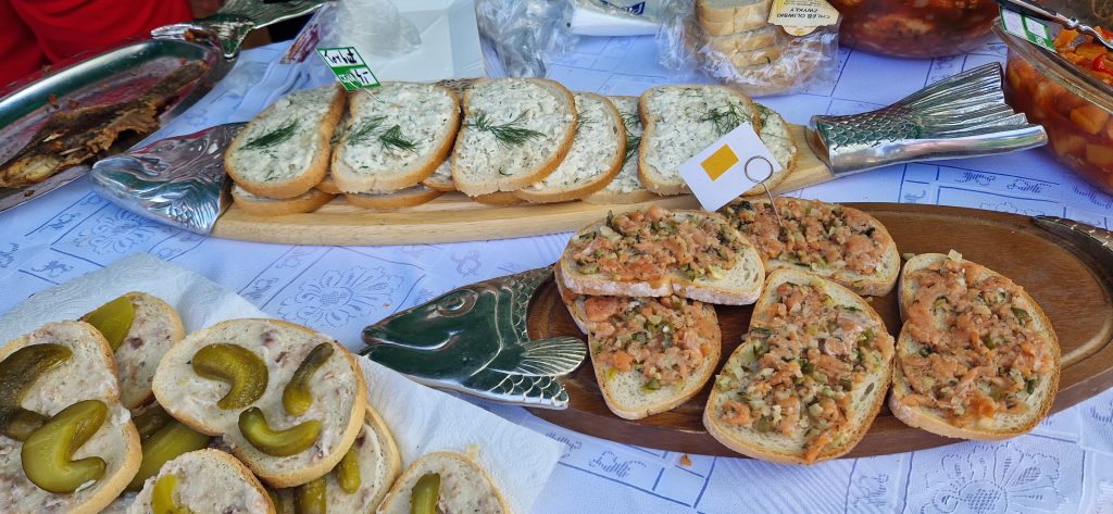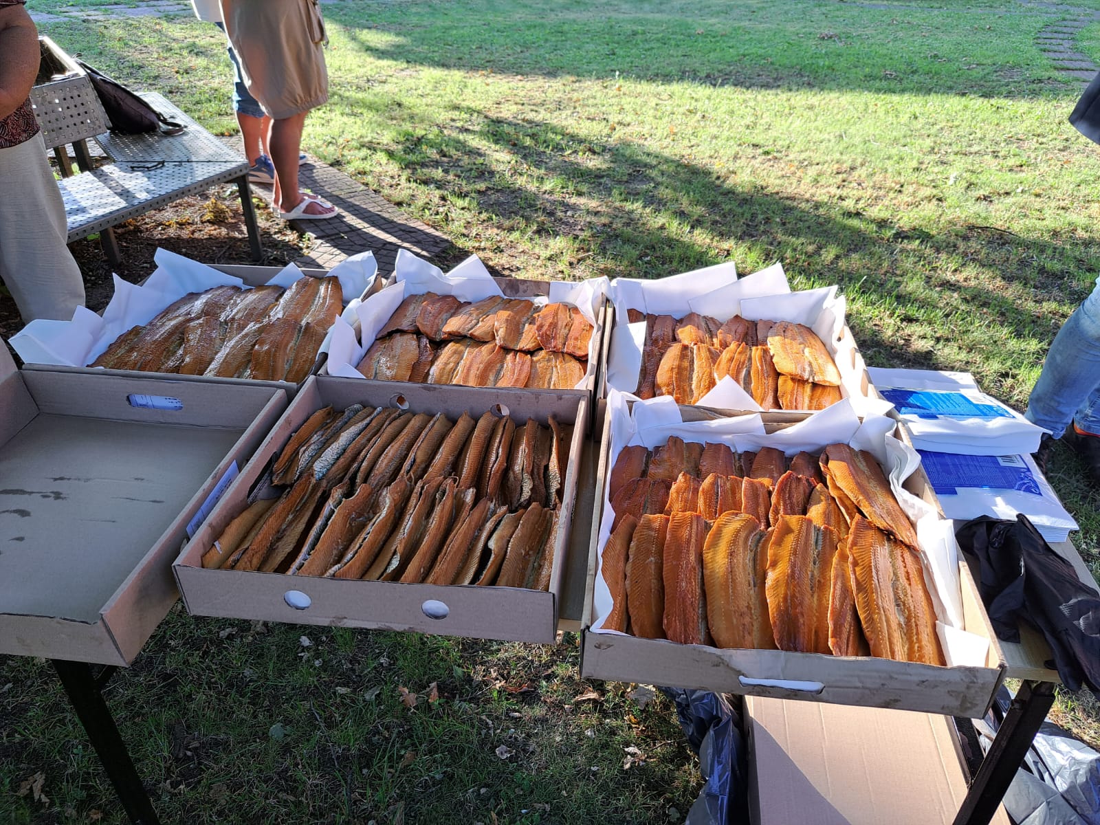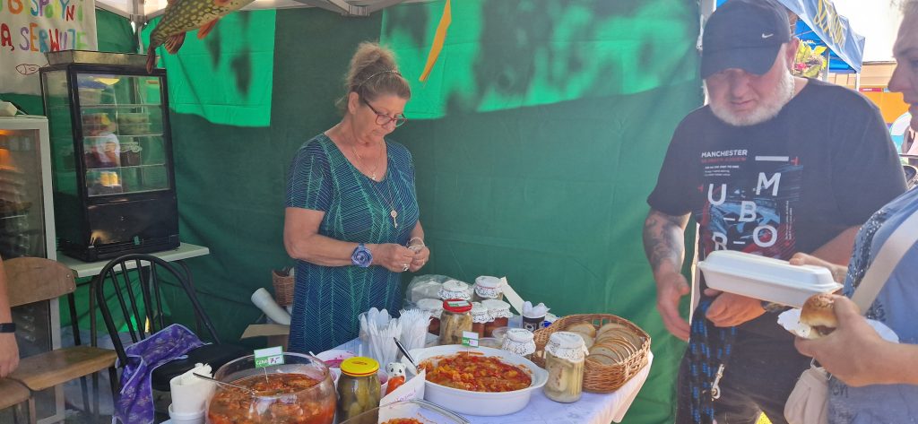 Tymczasem w porcie zabawa trwała dalej. Można było spróbować regionalnych przysmaków, w których oczywiście przodowały dania rybne, przygotowane przez sołectwo Kąty Rybackie i gospodynie z Kątów Rybackich. Bogate menu oferowały nam również Koło Gospodyń Wiejskich Chochla i Warząchew w Sztutowie oraz KGW Łaszkowianki z Łaszki.