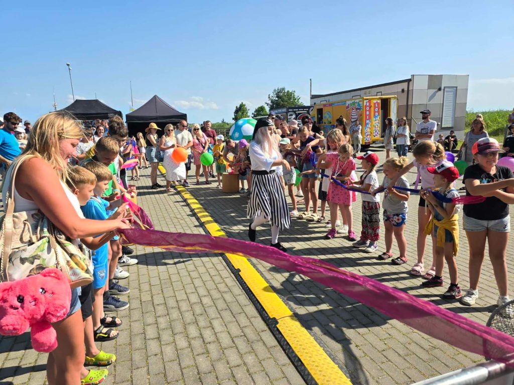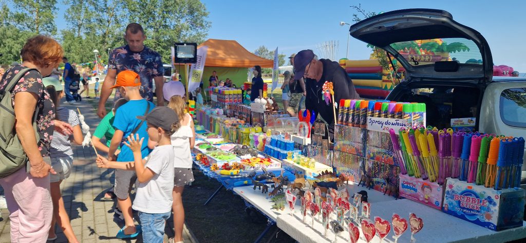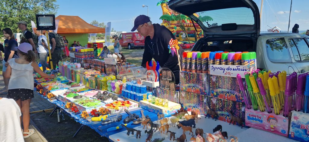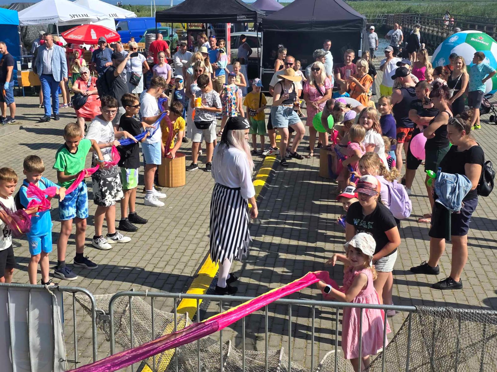 Niewątpliwie wielkim zainteresowaniem wśród najmłodszych uczestników wydarzenia cieszyła się także specjalnie przygotowana strefa animacji z warsztatami balonowymi, dmuchańcami, kącikiem plastycznym, giga klockami, zaplataniem warkoczyków, robieniem tatuaży i robieniem ogromnych baniek mydlanych. W kolejnej strefie dla najmłodszych istniała możliwość stworzenia własnych pamiątek ze sklejek w tematyce morskiej, które przygotowały nasze panie ze świetlic w Kątach Rybackich, Grochowa Trzeciego i Łaszki. Spore kolejki turystów oczekiwały na kolejną wspaniałą atrakcję jaką były darmowe rejsy po Zalewie Wiślanym zorganizowane przez Pana Mariusza Rzepnikowskiego, a ufundowane przez firmę Projekt Jantar Piotr Pałdyna, Valerio D’Amico Sp. J. Pogoda dopisała, a atrakcjom i zabawom nie było końca. Zadowolenie i uśmiechy nie schodziły z dziecięcych twarzy!