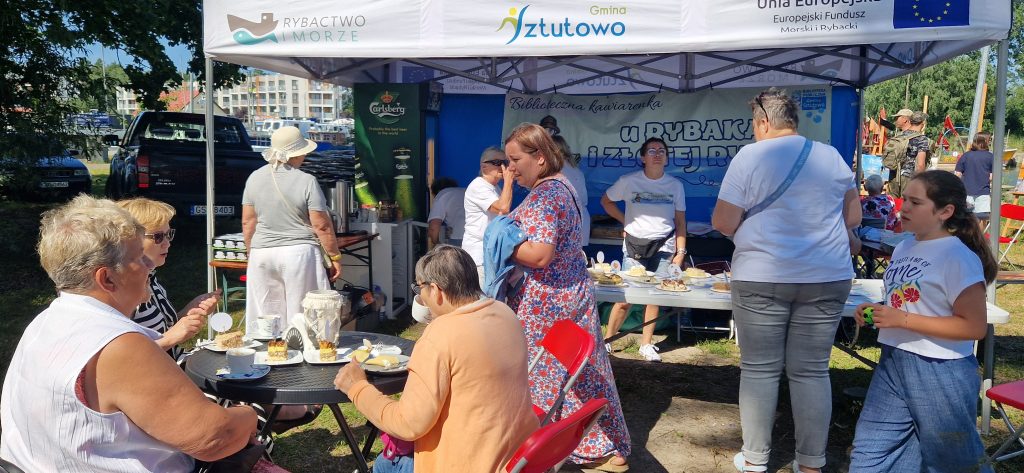 Na stoiskach można było podziwiać również lokalne rękodzieło a także dowiedzieć się o naszej urokliwej przyrodzie na stoisku Parku Krajobrazowego „Mierzeja Wiślana”. Panie z Biblioteki Publicznej Gminy Sztutowo przygotowały na tę okazję biblioteczną kawiarenkę „u Rybaka i Złotej Rybki”, w której oczywiście istniała możliwość złowienia złotej rybki przez małych wędkarzy, podczas gdy rodzice i opiekunowie mogli w tym czasie przysiąść na popołudniową kawkę i słodkie co nieco, podziwiając przy tym niesamowitą galerię obrazów w morskim klimacie kątowskiej mieszkanki Renaty Mikiprowicz. Tuż obok znajdowało się stoisko z loterią fantową pn. „Pomagamy Paulinie”, z której dochód został przeznaczony na pomoc poszkodowanej w bardzo ciężkim wypadku mieszkance Kątów Rybackich- Paulinie.