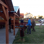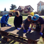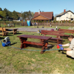 Przepiękna słoneczna pogoda w sobotnie popołudnie znacznie ułatwiła nam przeprowadzenie akcji Dzień Ziemi 2018 w Kątach Rybackich. Po wystawieniu wszystkich ławek spod altanki ochoczo zabraliśmy się za zamiatanie polbruku. Chłopcy szlifowali ławki papierem ściernym przygotowując je do malowania, a dziewczyny zbierały śmieci i zgrabioną trawę do odpowiednich worków. Udało nam się pomalować wszystkie ławki. Dobrze, że mieliśmy agregat do malowania. Boisko do koszykówki zostało pozamiatane (skąd tam było tyle szkieł??), darnina na zrytym przez dziki boisku została mniej więcej ułożona. Zniszczone elementy altanki zostały usunięte, a połamany, zgniły podest rozebrany. Po pracy wspólne ognisko, lody i zabawa. Niektórzy śmiali się, że co to za impreza, gdy nie ma na czym usiąść, bo ławki świeżo pomalowane. Słońce i wiatr jednak bardzo pomogły i jeszcze przed zakończeniem imprezy można było ławki wnieść pod wiatę. Efekt jest naprawdę zadowalający. Chciałbym, żeby tak posprzątane nasze miejsce do rekreacji długo nam służyło.