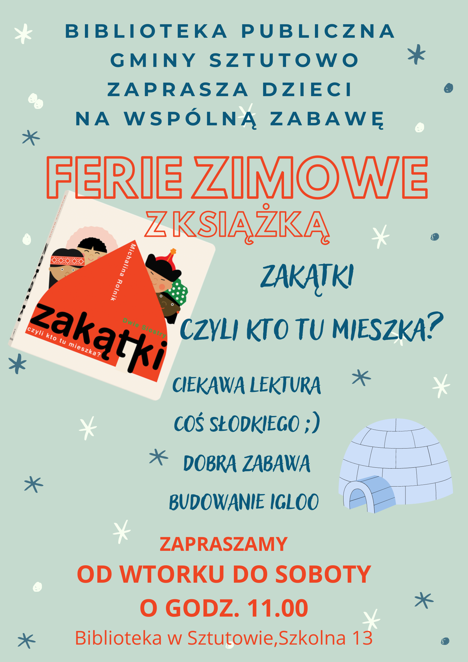 Strona główna » Aktualności » Ferie w Bibliotece Data dodania 09.02.2022 Ferie w Bibliotece Biblioteka Publiczna Gminy Sztutowo zaprasza na ferie zimowe: Drukuj