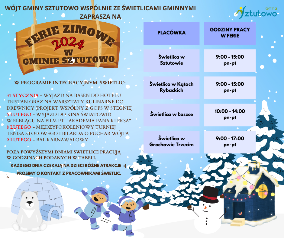 Strona główna » Aktualności » Ferie zimowe ze świetlicami gminnymi Data dodania 26.01.2024 Ferie zimowe ze świetlicami gminnymi Drukuj