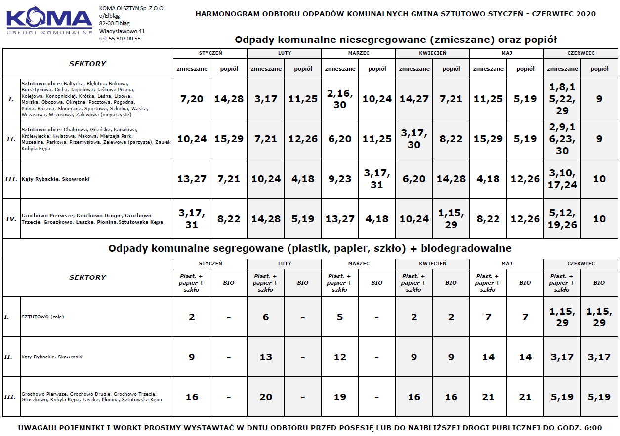 Strona główna » Aktualności » Harmonogram odbioru odpadów na 2020 Data dodania 23.12.2019 Harmonogram odbioru odpadów na 2020 Drukuj