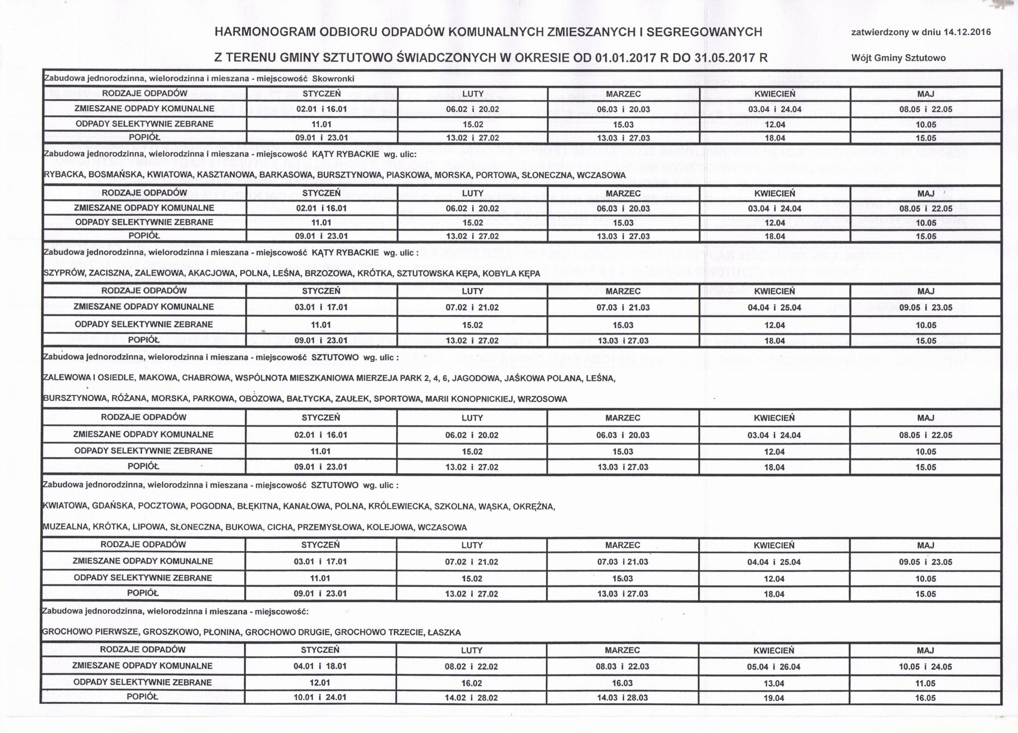 Strona główna » Aktualności » HARMONOGRAM WYWOZU ŚMIECI Data dodania 09.01.2017 HARMONOGRAM WYWOZU ŚMIECI Drukuj