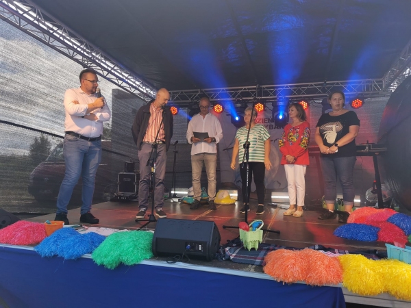 Kolejnym punktem programu był występ lokalnego zespołu dziecięcego Mała Mi, który w repertuarze promował naszą gminę, a dzięki swym kolorowym przebraniom i pomponom scena zrobiła się iście tęczowa.