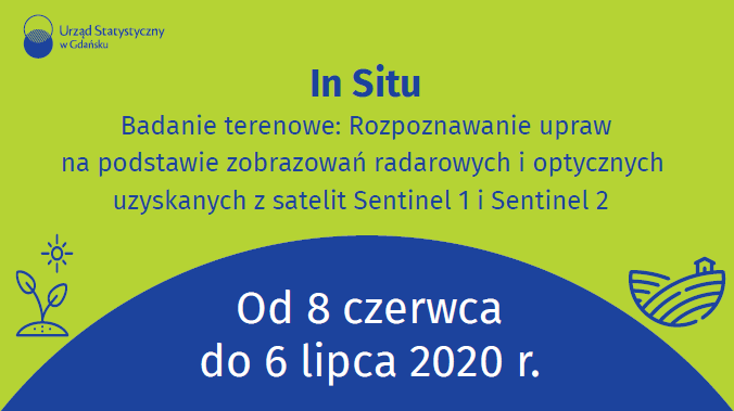W terminie od 8 czerwca do 6 lipca 2020 r. na terenie województwa pomorskiego jest prowadzone badanie pilotażowe: Rozpoznawanie upraw na podstawie zobrazowań radarowych i optycznych uzyskanych z satelit Sentinel l i Sentinel 2. Badanie polega na rozpoznaniu przez pracowników Urzędu Statystycznego w Gdańsku upraw i ich opisie (łącznie z wykonywaniem zdjęć) na wybranych działkach. W celu prawidłowego wykonania zdjęć konieczne będzie wejście pracownika na teren działki, na odległość około 30 m od granicy. Rozpoznanie upraw na podstawie zobrazowań satelitarnych (pozyskanych z Centrum Badań Kosmicznych PAN) i porównanie ich z opisem wykonanym w terenie przez pracowników Urzędu Statystycznego, jest niezbędne dla właściwej interpretacji danych satelitarnych w celu określenia powierzchni wybranych upraw. Osobą do kontaktu w powyższej sprawie jest pani Alicja Smoleń, tel. komórkowy 695 254 089, e-mail A.Smolen@stat.gov.pl.
