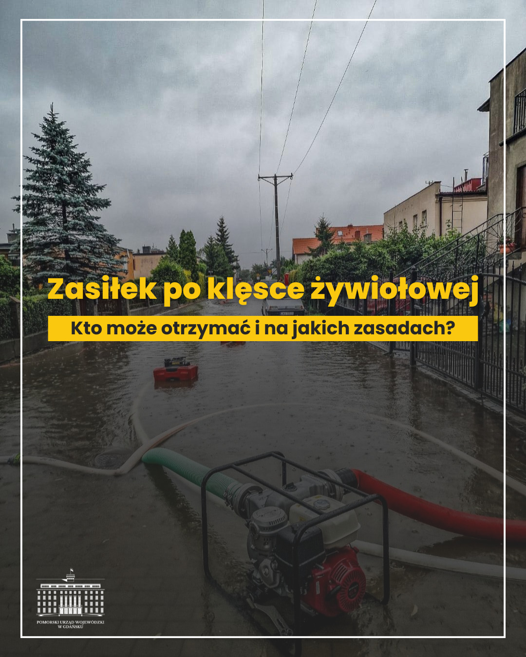 Wójt Gminy Sztutowo, informuje że Gminny Ośrodek Pomocy Społecznej w Sztutowie rozpoczyna przyjmowanie wniosków o udzielenie zasiłku celowego dla osób, które poniosły straty w związku z wystąpieniem zdarzenia noszącego znamiona klęski żywiołowej w budynkach mieszkalnych, podstawowym wyposażeniu gospodarstw domowych, które miało miejsce w bieżącym tygodniu (intensywne opady deszczu).