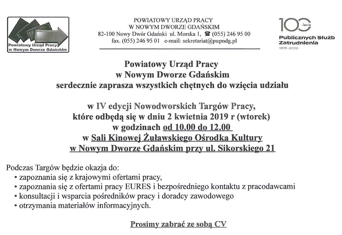 Strona główna » Aktualności » IV Nowodworskie Targi Pracy – 02.04.2019 r. Data dodania 25.03.2019 IV Nowodworskie Targi Pracy – 02.04.2019 r. Drukuj