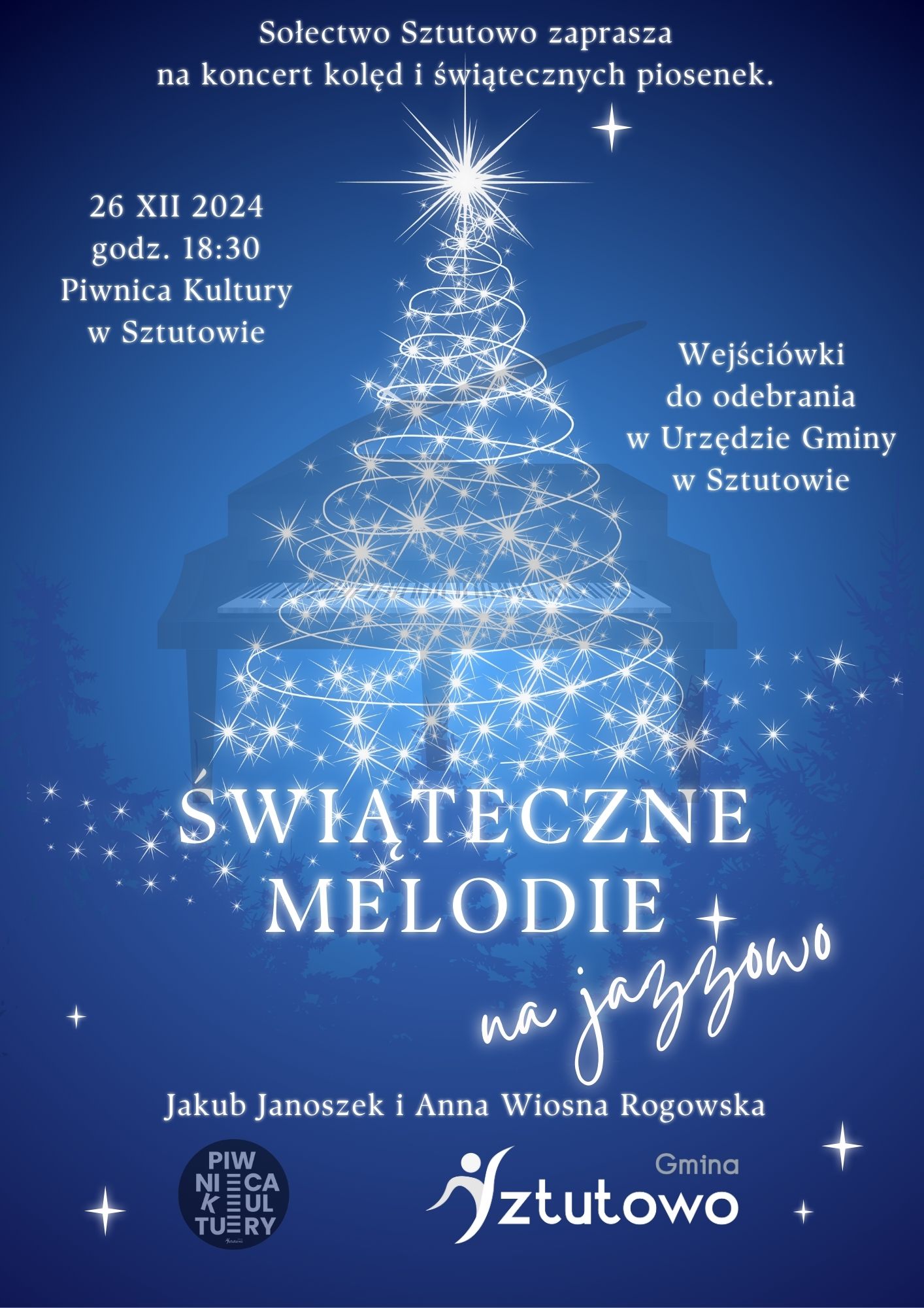 W imieniu Sołtysa Sztutowa oraz Rady Sołeckiej serdecznie zapraszamy mieszkańców i gości na wyjątkowy Koncert Kolęd, który odbędzie się w czwartek, 26 grudnia 2024 r., o godzinie 18:30 w Piwnicy Kultury w Sztutowie.