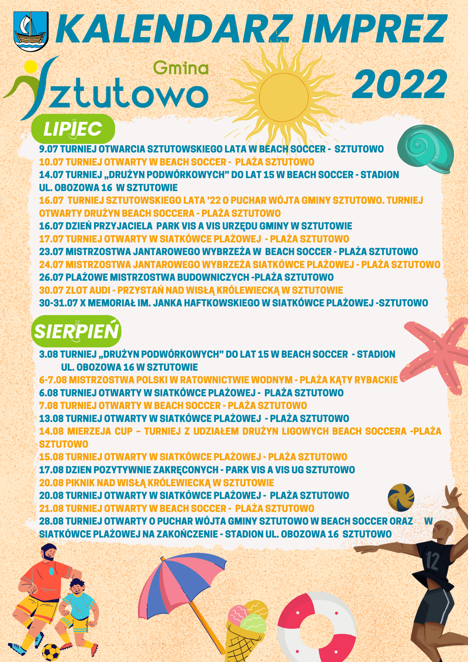 Strona główna » Aktualności » Kalendarz imprez letnich 2022 Data dodania 06.07.2022 Kalendarz imprez letnich 2022 Drukuj