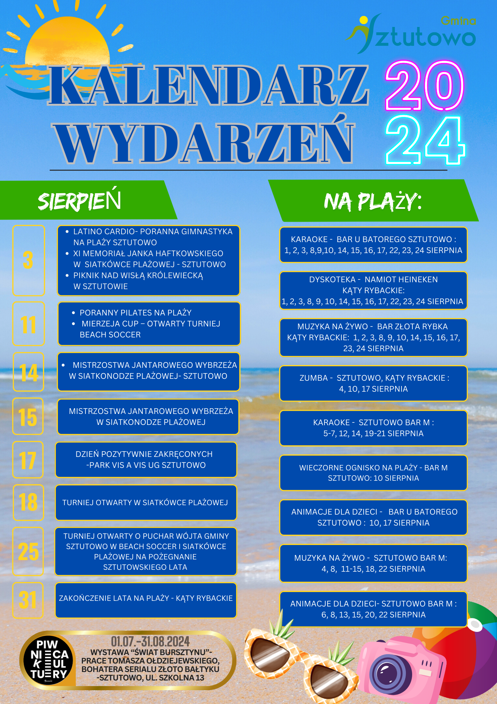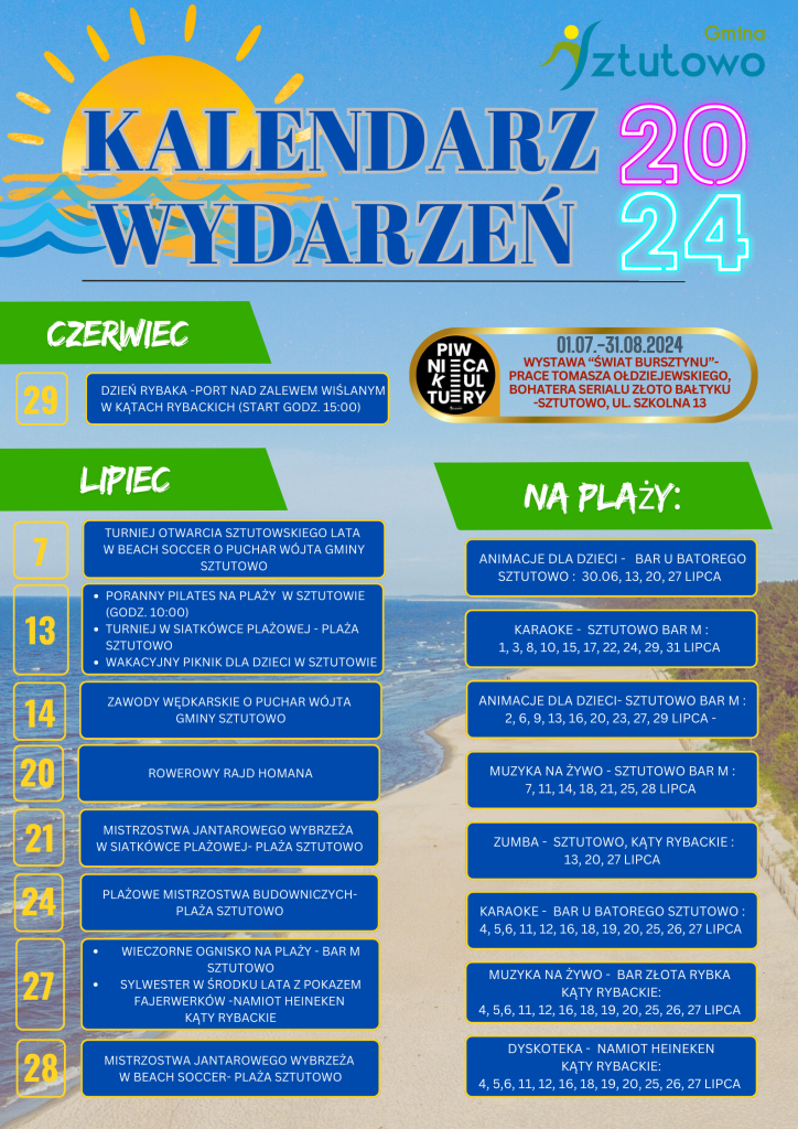 Strona główna » Aktualności » Kalendarz wydarzeń – Lato 2024 w Gminie Sztutowo Data dodania 23.06.2024 Kalendarz wydarzeń – Lato 2024 w Gminie Sztutowo Drukuj