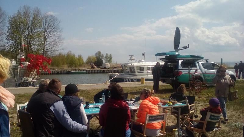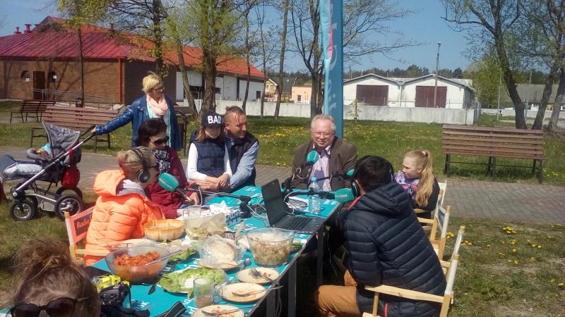 Pięcioosobowa ekipa w krótkim czasie zdążyła zintegrować się z naszą lokalną społecznością. Klimat audycji był piknikowy bo to przecież majówka. Nasze gospodynie Basia i Wiola jak zwykle zadziwiły kunsztem i wiedzą kulinarną, Rysiu Madej bawił dowcipem i opowieściami rybackimi, Marzena Kozak opowiadała o pracy z dziećmi, Krystyna Chabska i Arek Łaczyński o możliwościach turystycznych i atrakcjach Kątów Rybackich i całej naszej gminy, Robert Domżał opowiadał o Muzeum Zalewu Wiślanego, Alicja wraz ze mną o możliwościach przystani jachtowej, rozwoju Kątów Rybackich i Skowronek oraz całej naszej gminy i konieczności współpracy całej Mierzei Wiślanej. Na zakończenie restauracja Wielorybek zaprosiła ekipę na fantastyczny obiad. Ryby do przygotowania degustacji ufundowali Czesiu i Wioleta Miniewicz.