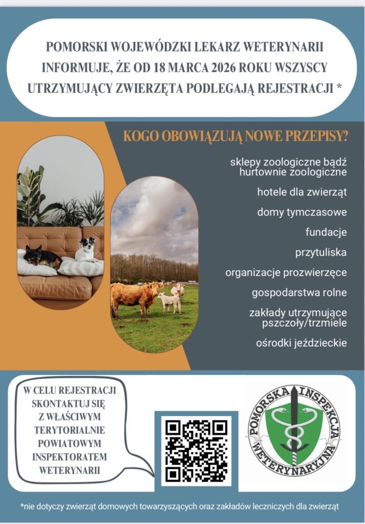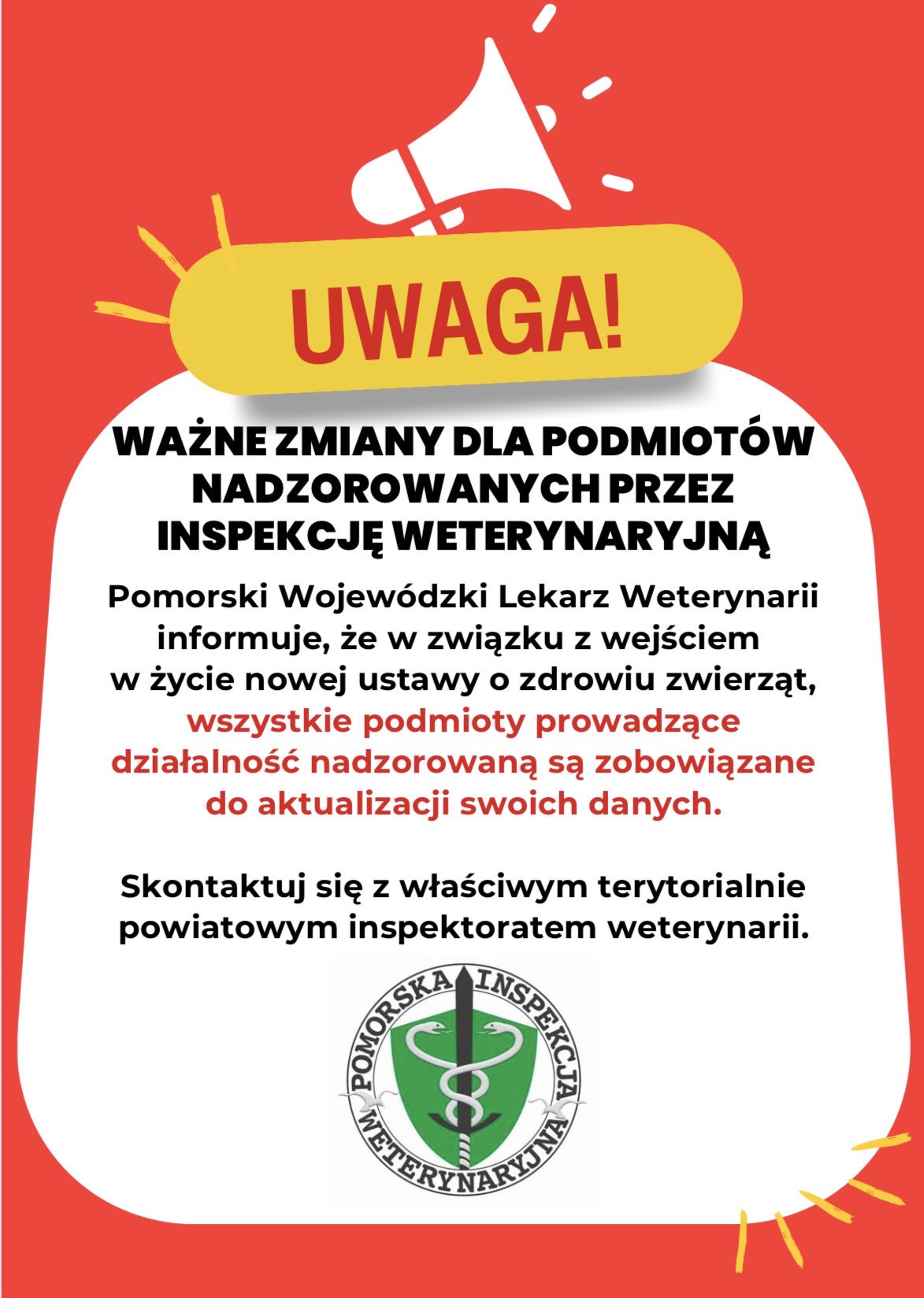 W imieniu Pomorskiego Wojewódzkiego Lekarza Weterynarii informujemy o wprowadzeniu nowych regulacji prawnych dotyczących ochrony zdrowia zwierząt.