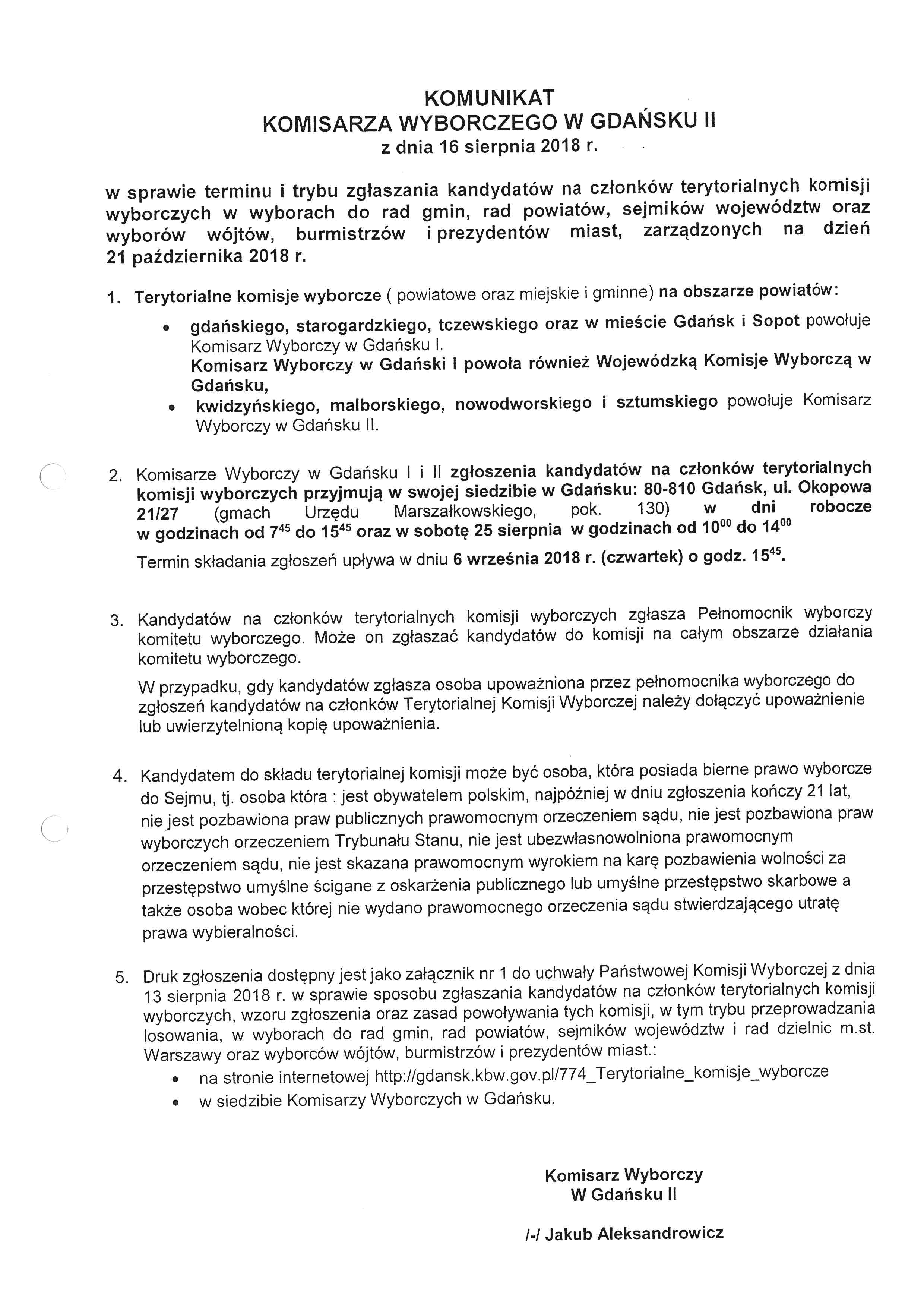 - W sprawie terminu i trybu zgłaszania kandydatów na członków terytorialnych komisji wyborczych.