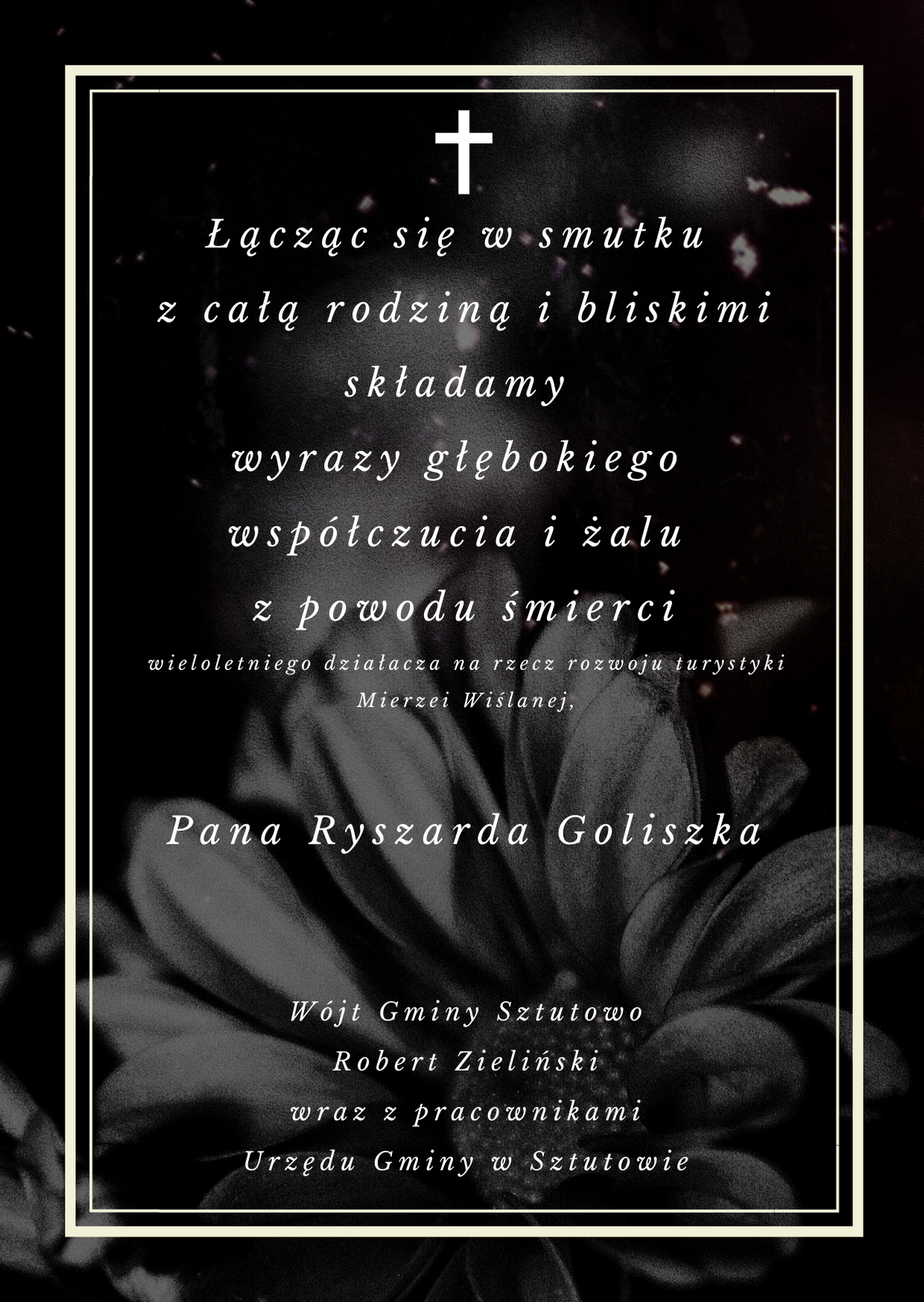 Łącząc się w smutku z całą rodziną i bliskimi składamy wyrazy głębokiego współczucia i żalu z powodu śmierci wieloletniego działacza na rzecz rozwoju turystyki Mierzei Wiślanej,