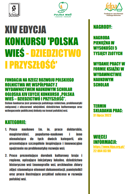 Fundacja na rzecz Rozwoju Polskiego Rolnictwa ogłosiła XIV edycję konkursu „Polska wieś – dziedzictwo i przyszłość”.