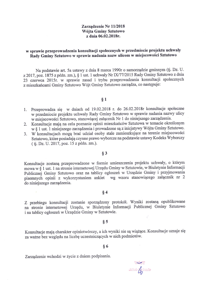 Wójt Gminy Sztutowo ogłasza konsultacje społeczne dotyczące projektu uchwały Rady Gminy Sztutowo w sprawie nadania nazwy ulicom w miejscowości Sztutowo. Konsultacje będą trwały w dniach 19 do 26 lutego 2018 r. Swoje opinie należy wyrazić poprzez wypełnienie i złożenie ankiety konsultacyjnej do 26 lutego br. do godziny 15:30. Szczegóły w załącznikach.