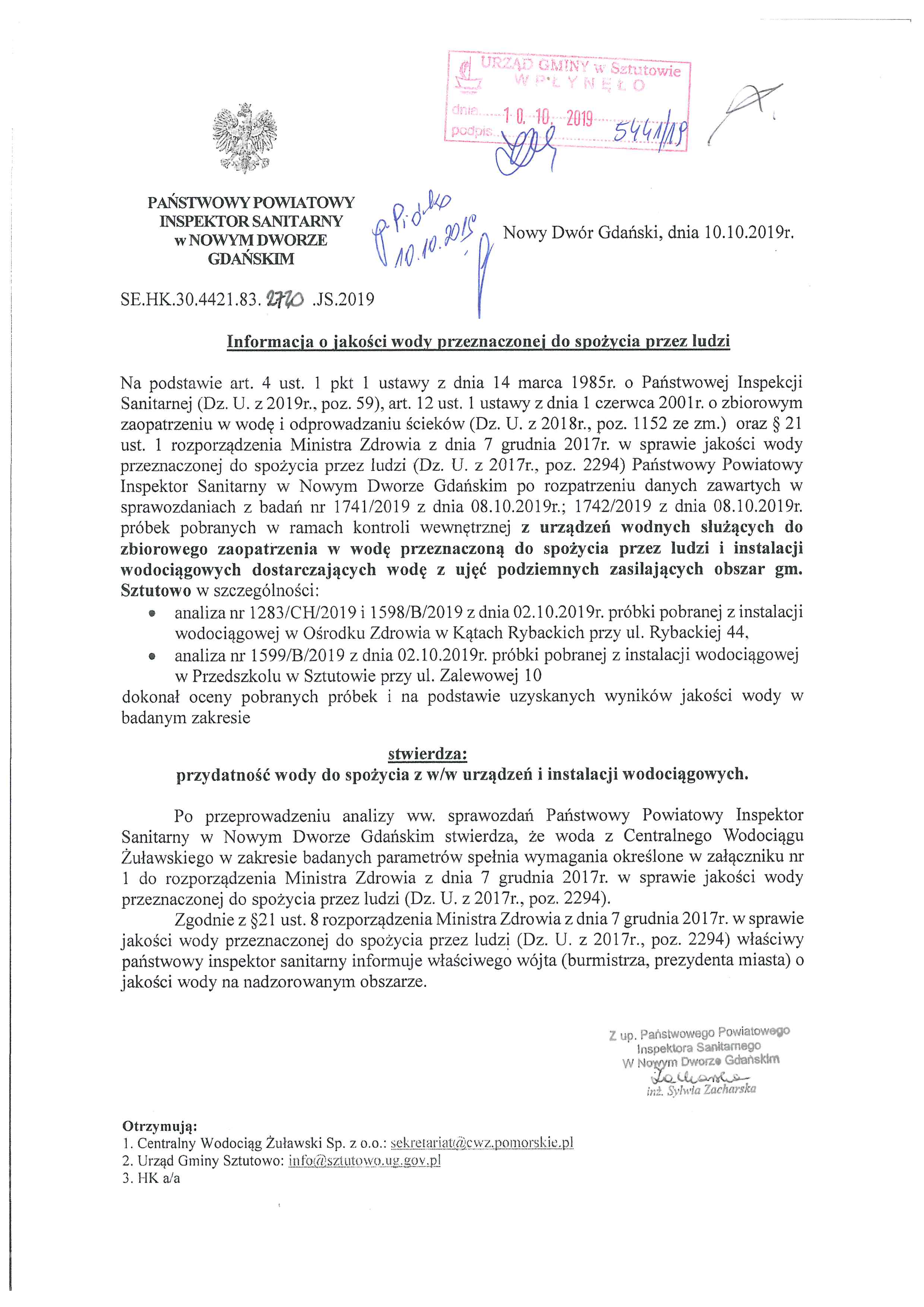 Strona główna » Aktualności » Kontrola jakości wody CWŻ Data dodania 17.10.2019 Kontrola jakości wody CWŻ Drukuj