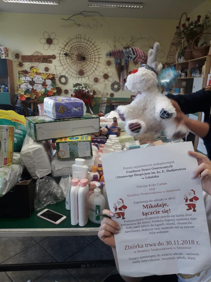 Świetlica Środowiskowa oraz Szkolne Koło Caritas w Sztutowie dziękuje wszystkim za udział w akcji „Mikołaje łączcie się” – wielkiej zbiórce prezentów świątecznych.