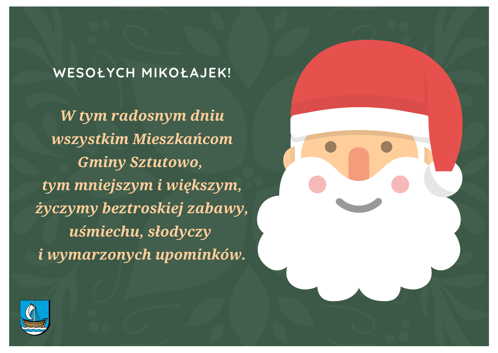 Strona główna » Aktualności » Mikołajki Data dodania 06.12.2021 Mikołajki Wesołych Mikołajek! W tym radosnym dniu wszystkim Mieszkańcom Gminy Sztutowo, tym mniejszym i większym, życzymy beztroskiej zabawy, uśmiechu, słodyczy i wymarzonych upominków. Drukuj