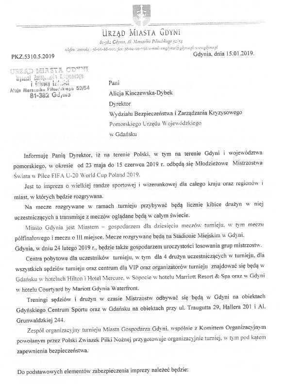 Urząd Miasta Gdyni informuje o Młodzieżowych Mistrzostwach Świata w piłce nożnej FIFA U-20 World Cup Poland 2019, które odbędą się w Gdyni w dniach 23 maja – 15 czerwca 2019 roku.