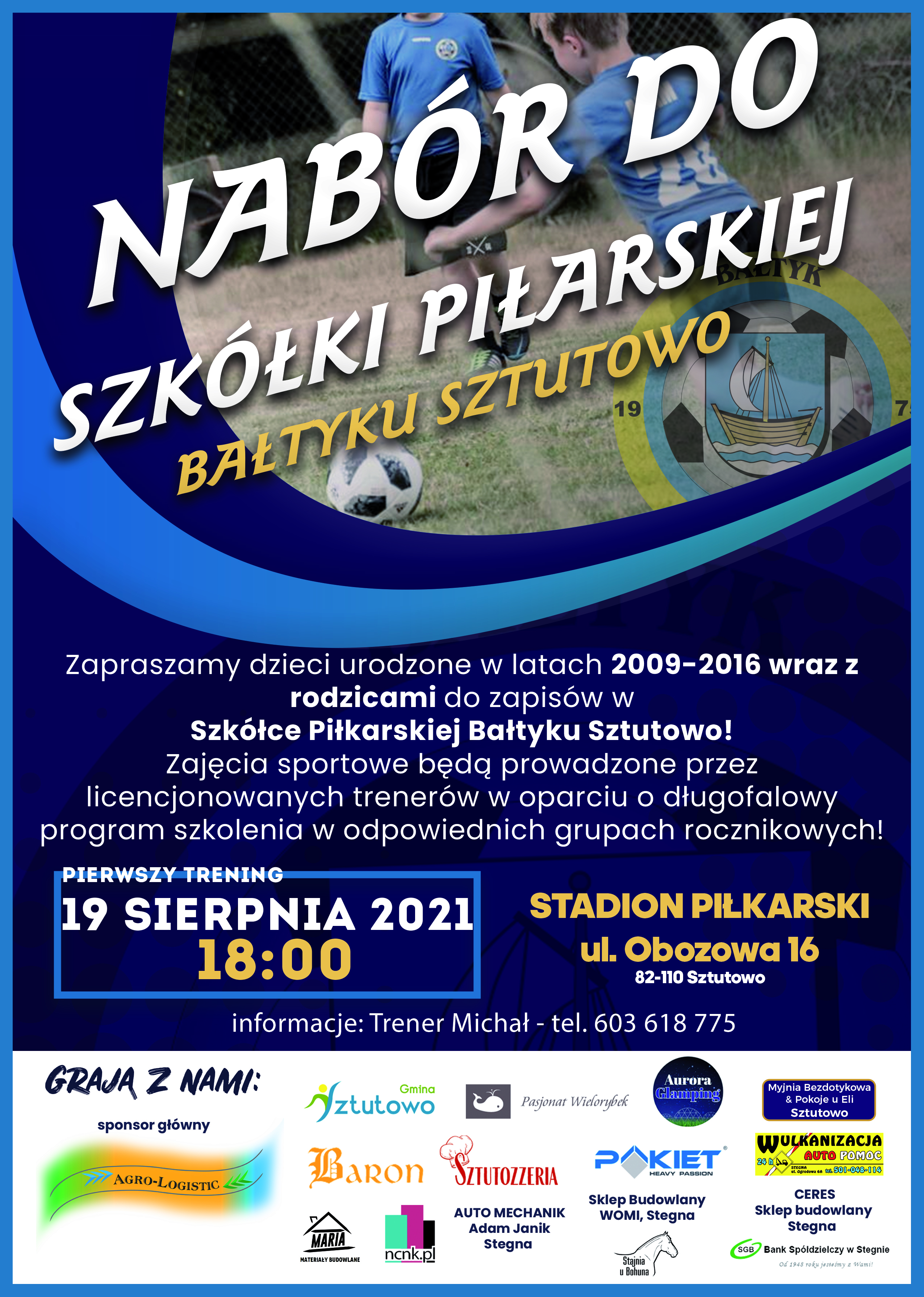 Strona główna » Aktualności » Nabór do szkółki piłkarskiej Data dodania 30.07.2021 Nabór do szkółki piłkarskiej Drukuj