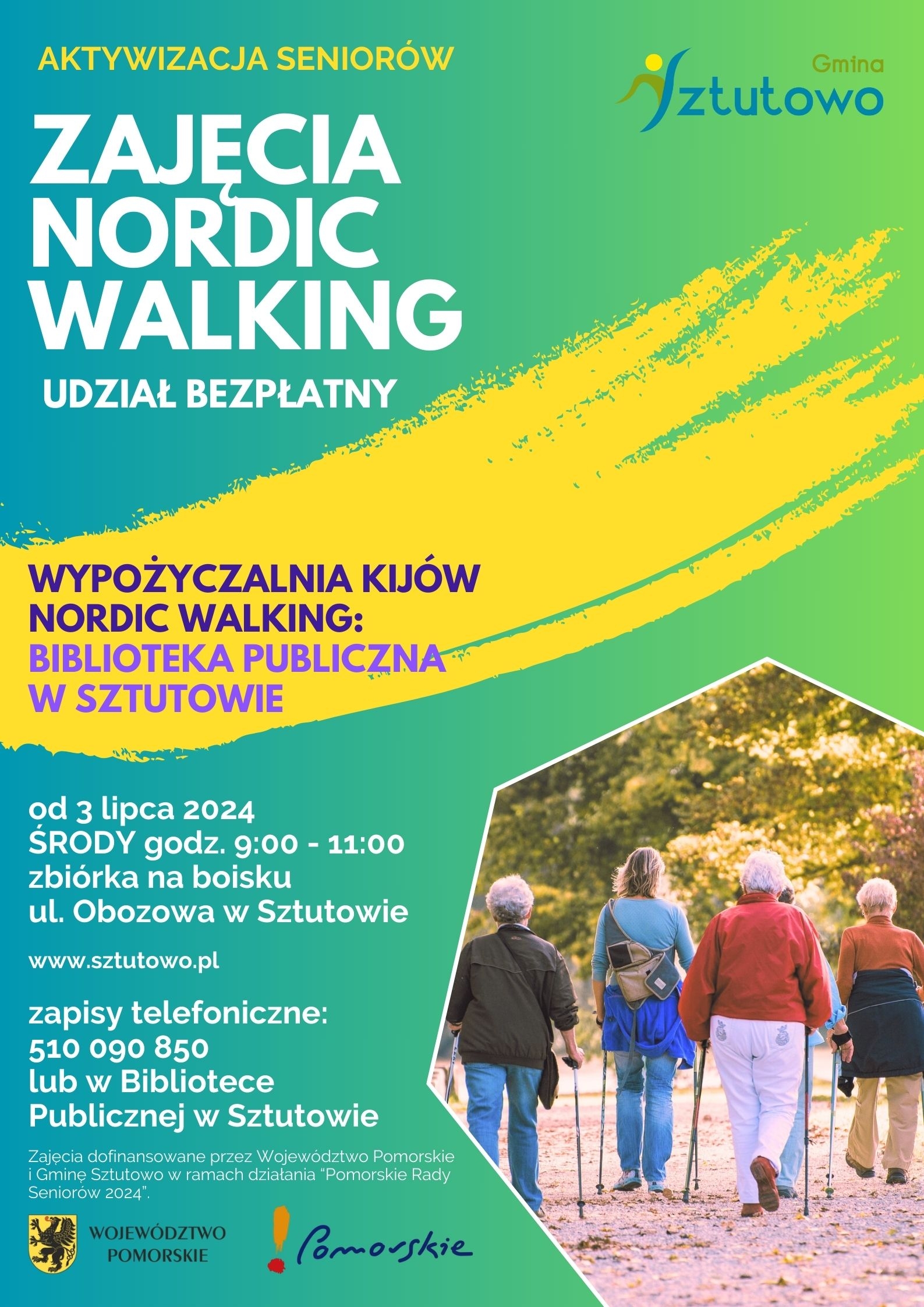 Drodzy seniorzy! Przypominamy, że wciąż można skorzystać z zajęć plenerowych Nordic Walking 🚶♀️🚶.