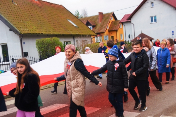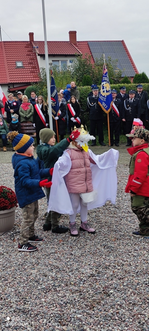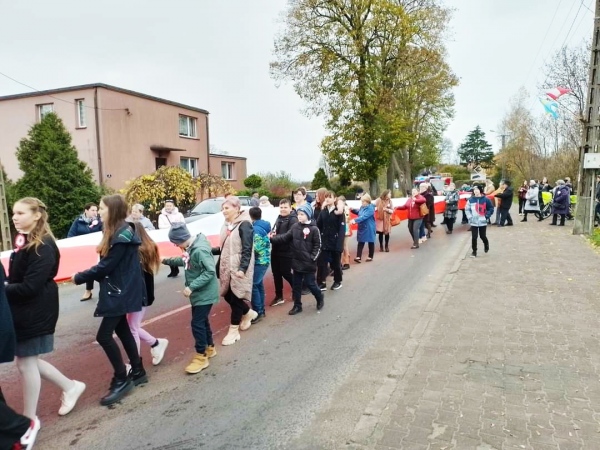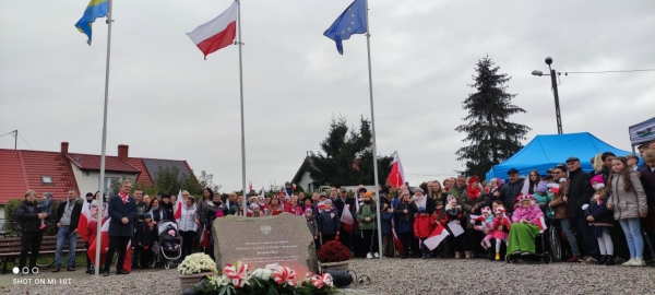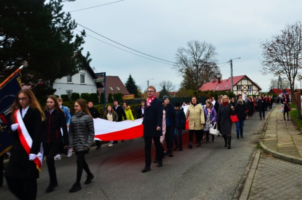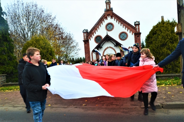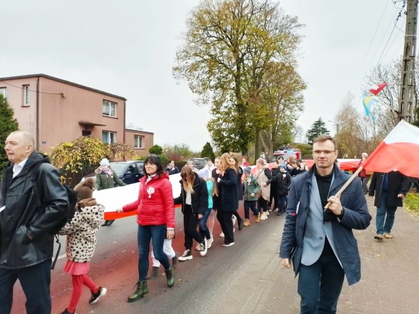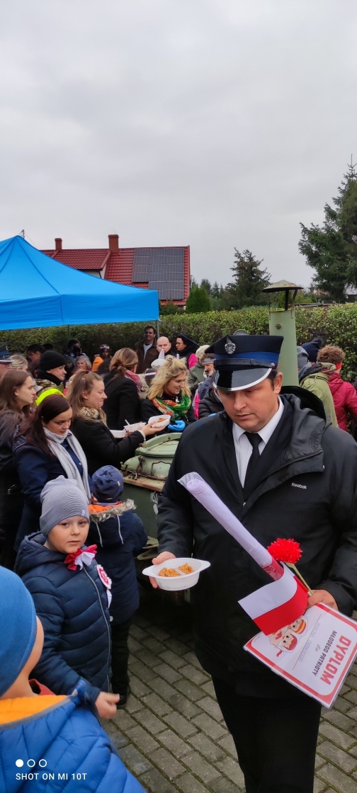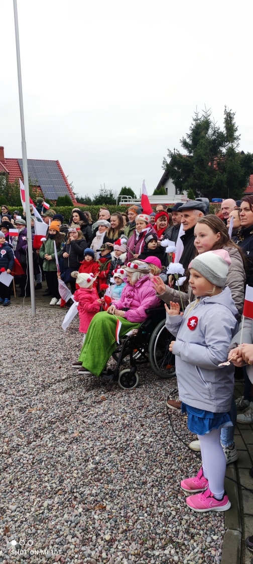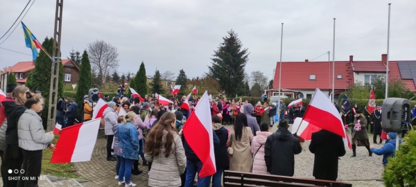 Dziś, tj. 11 listopada obchodziliśmy 104. rocznicę odzyskania niepodległości przez Polskę. Sztutowo czynnie włączyło się w obchody tego wyjątkowego święta. Uroczystości rozpoczęły się od Mszy Świętej w kościele pw. Św. Wojciecha w Sztutowie, w której licznie brali udział nasi mieszkańcy. Poczty sztandarowe reprezentowali: przedstawiciele OSP Sztutowo, OSP Łaszka oraz szkoły podstawowej w Sztutowie. Po mszy świętej odbył się Marsz Niepodległości, którego trasa przebiegała ulicą Krótką i Szkolną do skweru Stulecia Odzyskania Niepodległości. Mieszkańcy z dumą wspólnie nieśli 50-metrową flagę narodową, podążając za pojazdem OSP, z którego niosły się pieśni narodowe. Oficjalną część uroczystości na skwerze rozpoczęli lektorzy ze szkoły podstawowej, następnie głos zabrali gospodarz uroczystości – Wójt Gminy Sztutowo Robert Zieliński oraz przewodniczący Rady Gminy Pan Marcin Owsiński. Część artystyczną przygotowali dla nas najmłodsi mieszkańcy – grupa Motylków i Pszczółek z przedszkola w Sztutowie. W programie nie zabrakło również znanych wszystkim pieśni patriotycznych, tj. „Rota”, „Maszerują strzelcy”, „Wojenko, wojenko”, „My pierwsza brygada” i wielu innych. Dla wszystkich uczestniczących w uroczystościach zostały przygotowane przez Panią Alinę Niedzielską i jej podopiecznych przypinki i dekoracje w barwach narodowych. Mieszkańcy otrzymali również flagi, które ufundował prezes firmy EL INVEST DEVELOPMENT Pan Włodzimierz Powązka, natomiast najmłodszym uczestnikom wręczono słodkie, biało-czerwone lizaki. Nie obyło się też bez poczęstunku, którym był ciepły bigos przygotowany przez panie kucharki ze szkoły, a także słodkich drożdżówek naszych mieszkanek.