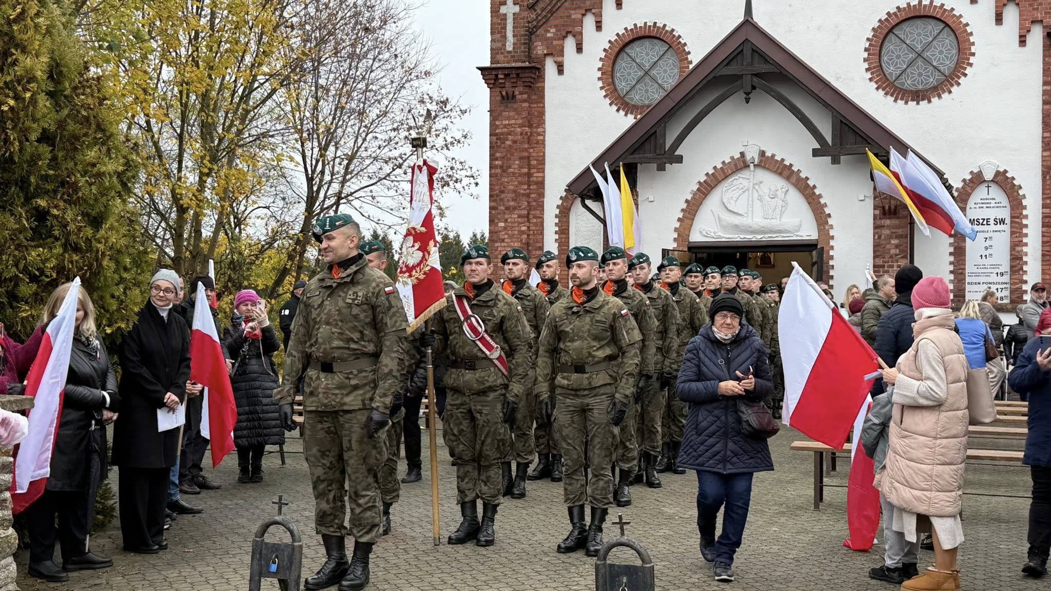Uroczystości rozpoczęła Msza Święta w intencji Ojczyzny w kościele pw. św. Wojciecha, w której uczestniczyli mieszkańcy, goście oraz żołnierze 16. Pułku Logistycznego z Elbląga. Po nabożeństwie, w atmosferze dumy i jedności, odbył się uroczysty przemarsz z biało-czerwoną flagą na Skwer Stulecia Odzyskania Niepodległości.