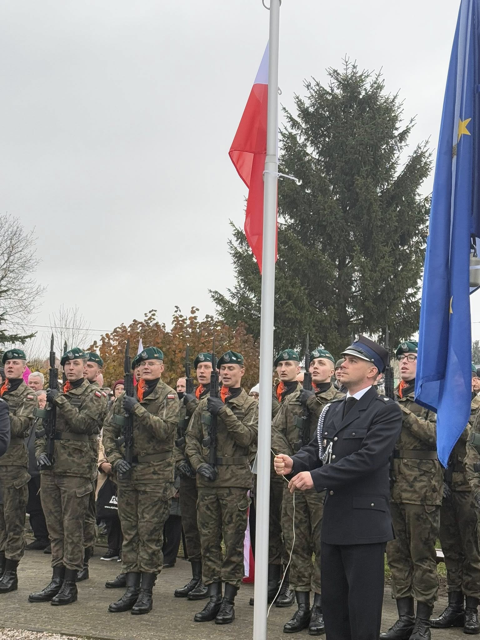 Na miejscu odbyła się dalsza część obchodów – podniesienie flagi państwowej, wspólne odśpiewanie Mazurka Dąbrowskiego, okolicznościowe przemówienia oraz złożenie kwiatów pod pomnikiem. Całość uświetniło wspólne śpiewanie pieśni patriotycznych razem z grupą wokalną z Gminnej Piwnicy Kultury prowadzonej przez Mateusza Gaska.